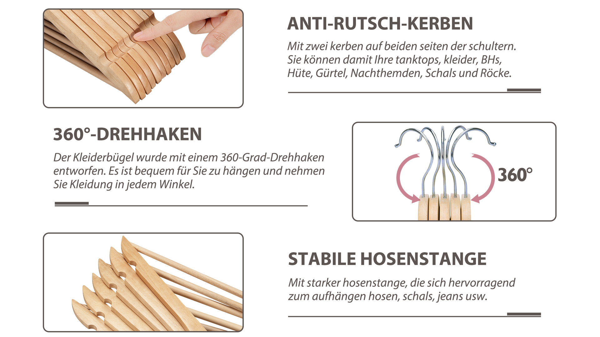 Utopia Home Premium Kleiderbügel Holz 20 Stück, Holzbügel Mit 360 Grad