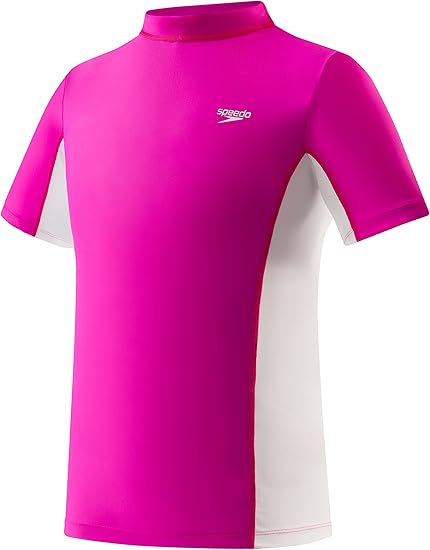 Speedo Girls' Uv Swim Short Sleeve Printed Rash Guard Shirt