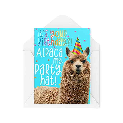 Tongue In Peach Cartes De Vœux Fantaisie Amusantes | Alpaga My Party Hat | Anniversaire Brother Sister Dad Mum Best Friend Old Alpaga Funny Blague | CBH1225