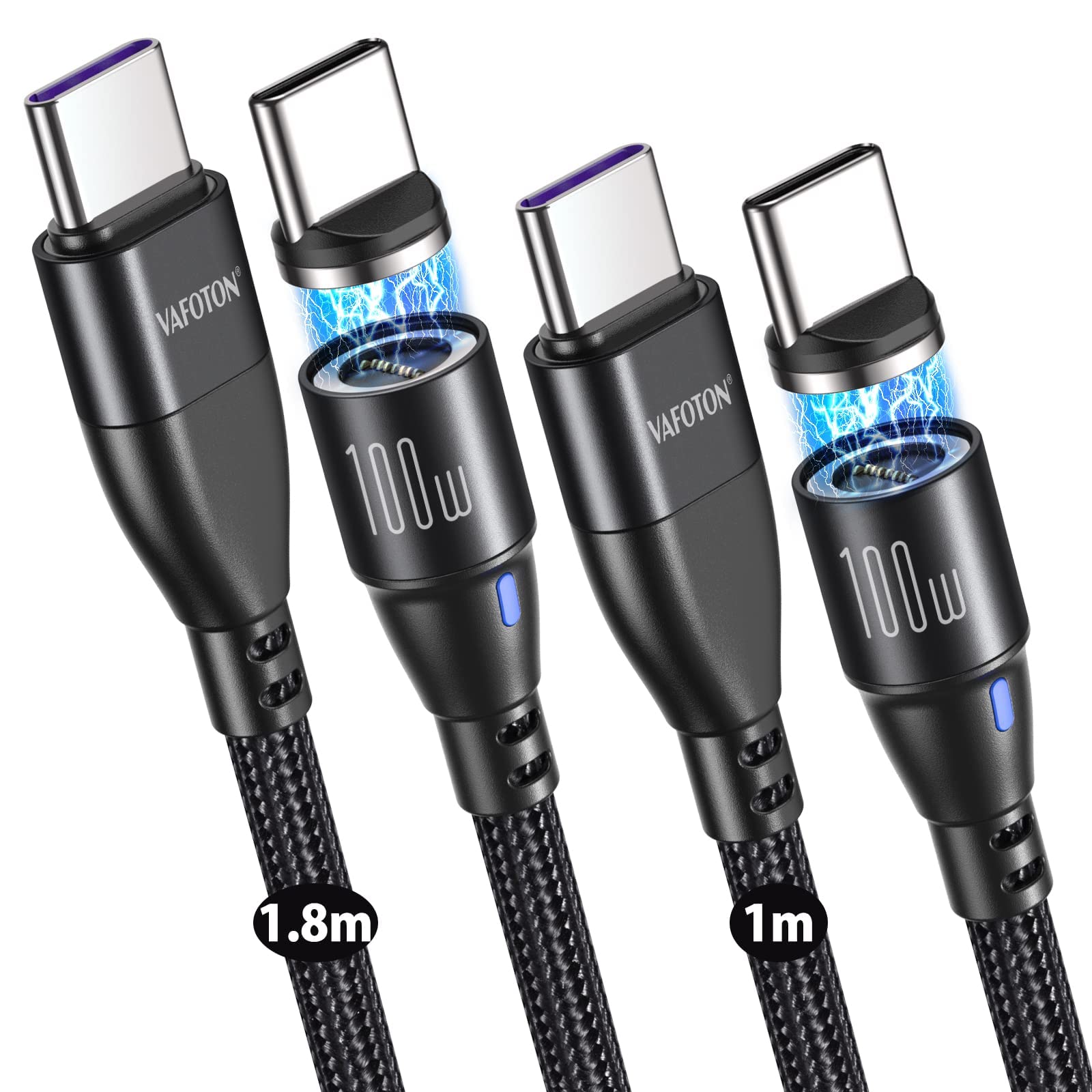 AUFU USB C agnet Adapter 9PIN - Typ C agnetkopf Ladekabel für... [Verbesserter 240W E-Mark Chip] Bis zu 240 W (48 V/5 A) schnelles Laden. Abwärtskompatibel mit 20W/25W/45W/60W/65W/100W/140W/180W in USB PD 3., 1 Extended Power Range (EPR). Zum Beispiel Dell XPS, MacBook Air/Pro, lPhone 16 Serie, Samsung Galaxy Serie, lPad Mini 6, lPad Pro, lPad Air, Switch und weitere zukünftige Geräte mit USB-C-Anschluss. Abwärtskompatibel mit 20W/25W/45W/60W/65W/100W/140W/180W in USB PD 3.1 Extended Power Range (EPR). [Daten Synchronisieren] Dieses Typ C-Datenkabel bietet Übertragungsgeschwindigkeiten von bis zu 480Mbps, Sie können mit diesem magnetischen USB-C-auf-USB-C-Kabel problemlos Fotos und Musik übertragen., HINWEIS: Monitor-Ausgang einschl. Desktop-Erweiterung werden nicht unterstützt. Dieses magnet ladekabel verfügt über einen eingebauten intelligenten E-Marker-Chip zur intelligenten Erkennung ihrer Batterie und zur Gewährleistung von Sicherheit, Stabilität und Batterieschutz. [Kompatibel mit den Meisten Smartphone-Hüllen] Wir haben den 9-Pin Typ C Magnetkopf aktualisiert, der neue Typ C Kopf ist 3mm länger als der alte, um das Kompatibilitätsproblem mit den Smartphone-Hüllen zu beseitigen. Diese Magnetkupplung ist super bequem und vereinfacht so die Handhabung beim Laden. [Ultra-Starkes Laden mit 240 Watt] Bringen Sie Effizienz in Ihr Leben mit der Fähigkeit, ein 16-Zoll-MacBook Pro in nur 26 Minuten auf 50 % und ein 1Phone 16 in nur 35 Minuten auf 90 % aufzuladen, dank der 240 Watt Leistung. PowerLink™ – 240W PD Schnelllade-Kabel | 1+1 GRATIS [2 Nützliche Typ-C-Magnetköüfe] Dieses magnetische Ladekabel kommt mit 2pcs nützlichenn Magnetköpfen die sicher im Ladeanschluss Ihres Geräts verbleiben so eine Abnutzung durch häufiges Ein- und Ausstecken verhindern. [540 °-Rotations-Design] Das verbesserte magnetische Ladekabel kann seinen Magnekopf um 360° drehen und um 180° biegen, dieses praktische Design ermöglicht es Ihnen, den richtigen Winkel für jeden Ladevorgang zu finden. [Geeignet für Alle USB-C-Geräte] VAFOTON 240 W USB C auf C magnet ladekabel kompatibel mit praktisch allen USB-C-Geräten einschließlich Handys, Tablets und Laptops. VAFOTON 240W USB C Magnet Ladekabel 9Pins (2Pack, 1m/1.8m), 240W(48V/5A) PD Schnelllade Magnetisches Ladekabel, USB C auf Typ C Ladekabel Magnetisch für Tablet/Laptop/MaBook von VAFOTON. Bürobedarf günstig online kaufen bei Möbel & Garten