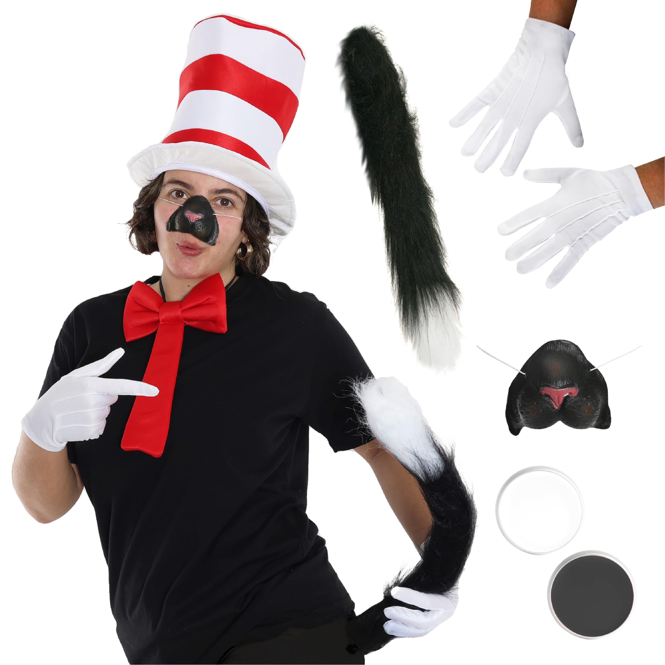 Erwachsenen KOSTÜME VERRÜCKTE Katze ROT UND WEIß GESTREIFTER Hut UND WEIßE HANDSCHUH UND Grosse ROTE Fliege= VON ILOVEFANCYDRESS