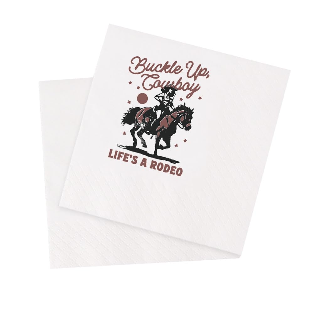 VOWFOO Not My First Rodeo Cocktail-Servietten, Cowgirl, Cowboy, Vintage, Country, Western, Lustig, Humorvoll, Spruch, Party, Einweg-Papierservietten, 100 Stück, 4,5 X 4,5 Cm, 2-lagig (nicht My First