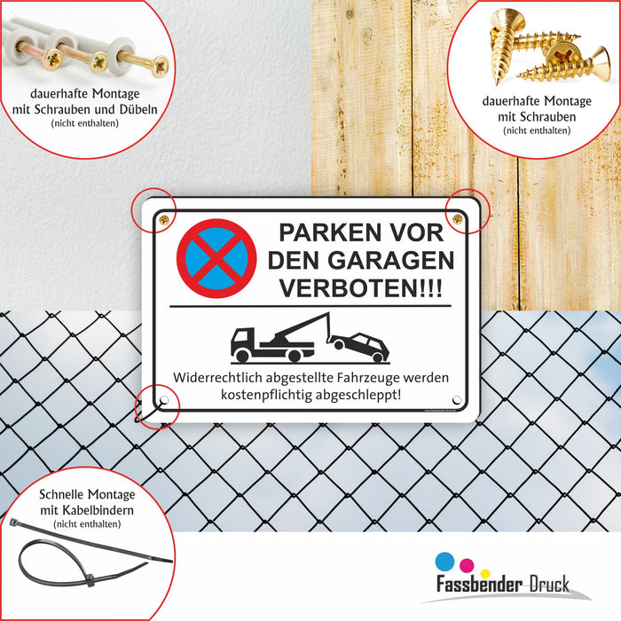Die deutliche Aufschrift „Parken vor den Garagen verboten!!! Druck: UV-beständiger Direktdruck – kein Verblassen, keine Foliennutzung Dank hochwertiger Materialien bleibt die Beschriftung auch langfristig gut lesbar und sichtbar. Schnell montiert und vielseitig einsetzbar für Privat- und Gewerbeflächen. Schafft klare Regeln und verhindert widerrechtliches Parken. Melis-Folienwerkstatt Parken verboten Schild - Abschleppschild für Parken vor Garage verboten - 30x20 cm - 3mm Aluverbund - Verschiedene Größen und Materialien - Mit Bohrlöchern günstig auf Haftung: Auf Glas, Metall, lackierten Oberflächen & Kunststoff QUALITÄT VON BAUER-SCHILDER: Schilder & Kennzeichnungen | Familienunternehmen aus Deutschland seit 2006 | Schneller und zuverlässiger Versand | viele weitere Produkte in unserem Amazonshop Erhältlich in verschiedenen Größen, um Ihren individuellen Anforderungen gerecht zu werden. Robust montiert – dauerhaft geschützt Die Befestigung ist unkompliziert und das Material hält Wind, Regen, UV-Strahlung und Frost problemlos stand. Mit einer langlebigen Verarbeitung und einfacher Montage sorgen Sie für Ordnung und vermeiden unbefugte Fahrzeugabstellungen. EINFACHE MONTAGE MIT BOHRLÖCHERN: Das Schild verfügt über präzise vorgebohrte Löcher zur flexiblen Befestigung an Wänden, Zäunen oder Pfosten. Die flexible Befestigungsmöglichkeit macht es vielseitig einsetzbar und garantiert einen sicheren Halt. Unser Hinweisschild ist perfekt geeignet, um Ihr Privatgrundstück, Ihre Einfahrt oder gewerbliche Flächen vor unbefugtem Parken zu schützen. Schild Feuerwehrzufahrt - Parken verboten - Widerr. ab - in 4 Größen - S350-007 Feuerwehr Aufkleber Melis-Folienwerkstatt Parken Verboten Schild - Abschleppschild Für Privatparkplatz Parkverbot Aufkleber WETTERFEST, UV-BESTÄNDIG & LANGLEBIG: Das Schild widersteht allen Witterungsbedingungen wie Regen, Sonne und Schnee. Dank seiner wetterfesten und UV-beständigen Eigenschaften bleibt die Beschriftung selbst bei extremen Wetterbedingungen lesbar und gut erkennbar. Anwendungsbereich: Für innen & außen geeignet Produziert in: Deutschland Effektiv gegen Garagenblockierer Dieses Schild bringt auf den Punkt, was viele sich wünschen: eine freie Zufahrt – ohne Diskussion. Text des Schildes:Parken verboten - FeuerwehrzufahrtWiderrechtlich abgestellte Fahrzeuge werden kostenpflichtig abgeschleppt Robust, langlebig und wetterfest: Gefertigt aus erstklassigem Hartschaum oder Alu-Verbund, ist dieses Schild speziell für den Einsatz im Innen- und Außenbereich konzipiert. Schild „Parken vor den Garagen verboten!!!
