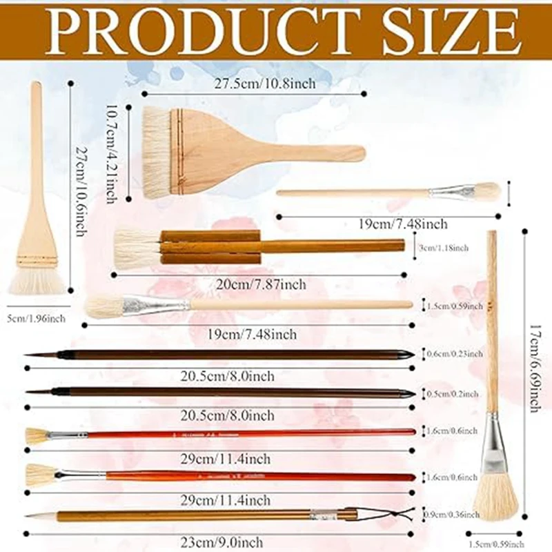 Geelin Keramikpinsel-Set Für Glasur, Verschiedene Formen Für Keramik, Acryl, Aquarell, Wolle, Borsten, Malerpinsel-Sets Für Malerei, Künstler, Felsen, Erwachsene, 9-teilig