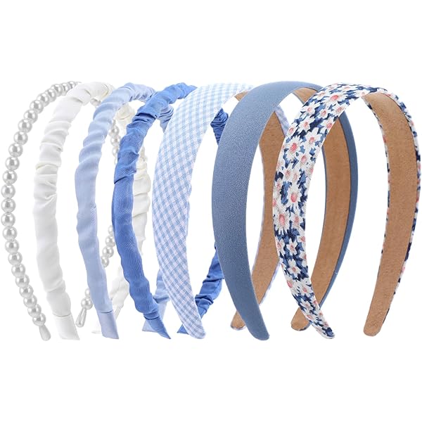 6 Stück Haarreifen Damen, Kleine Frische Blaue Serie Haarreif, Vielseitig Haarband Damen Sommer, Haarreifen Mädchen Einfarbig, Kariert, Perle, Gänseblümchen