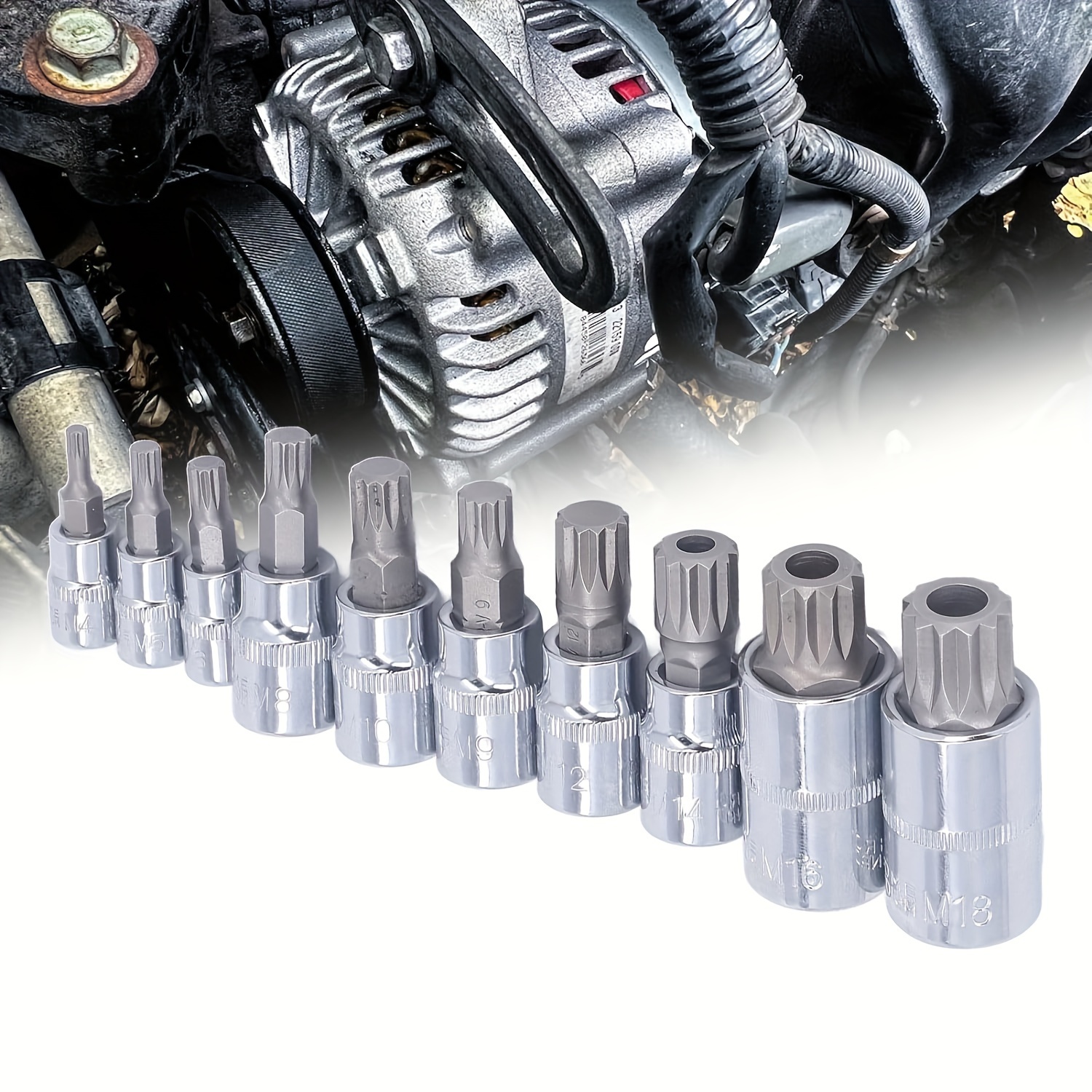 Vielzahnnüsse Spline Steckschlüssel Bits 22tlg Satz1/2"3/8" M4-M18 M16 Mit Loch