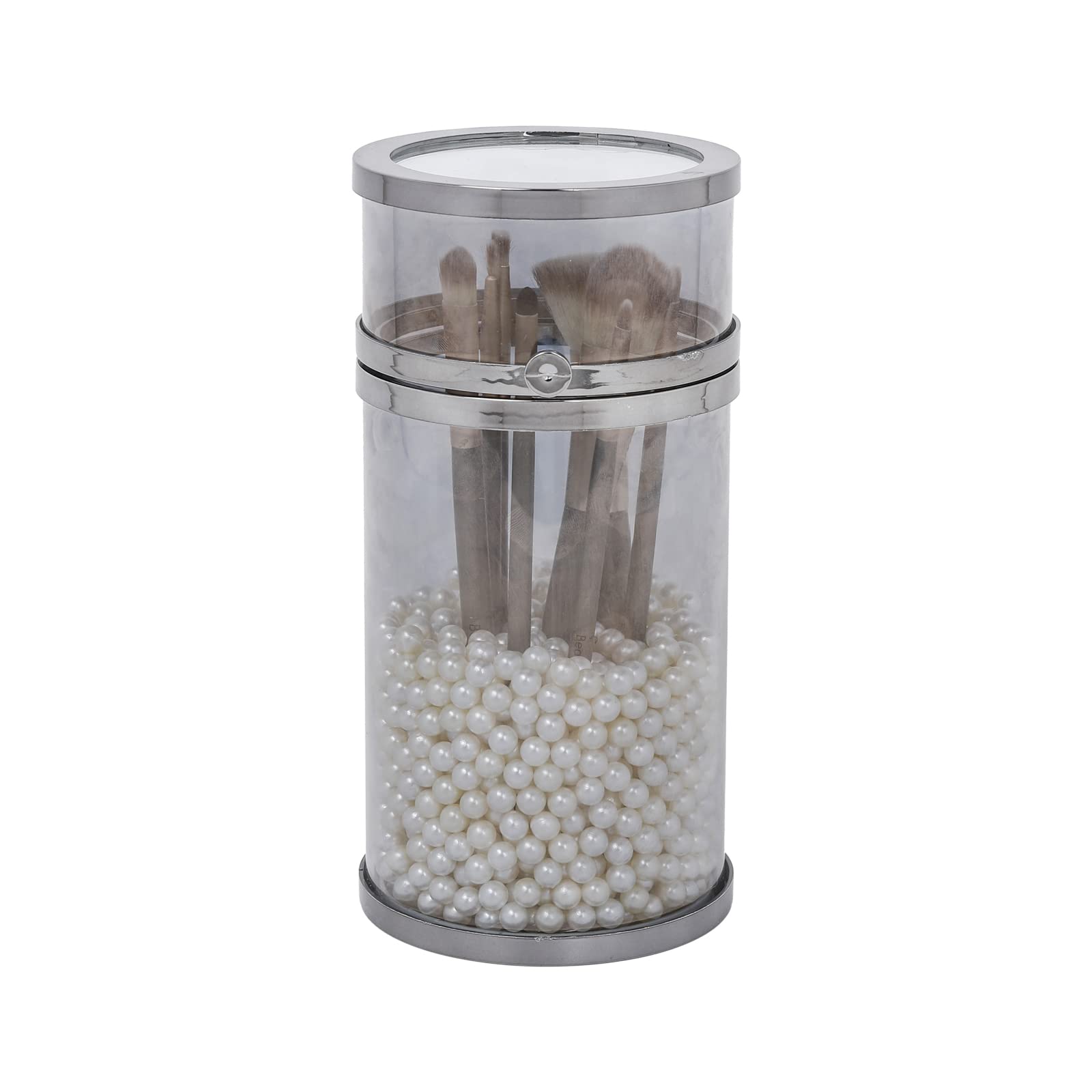 Yesesion Grauer Make-up-Pinselhalter, Vintage-Stil, Runder Glas-Kosmetikpinsel-Organizer Mit Staubdichtem Deckel, Große Kapazität, Arbeitsplatte, Schreibtisch (Perlen Im Lieferumfang Enthalten