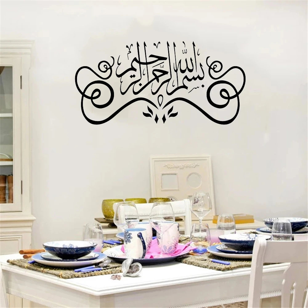 Schwarz DIY Abnehmbare Islamischen Muslim Kultur Suren Arabisch – Bismilliah Allah Vinyl Wand Sticker/Aufkleber Koran Zitate Kalligraphie Als Muslimischen Home Wandbild Art Decorator 9411(57x135cm