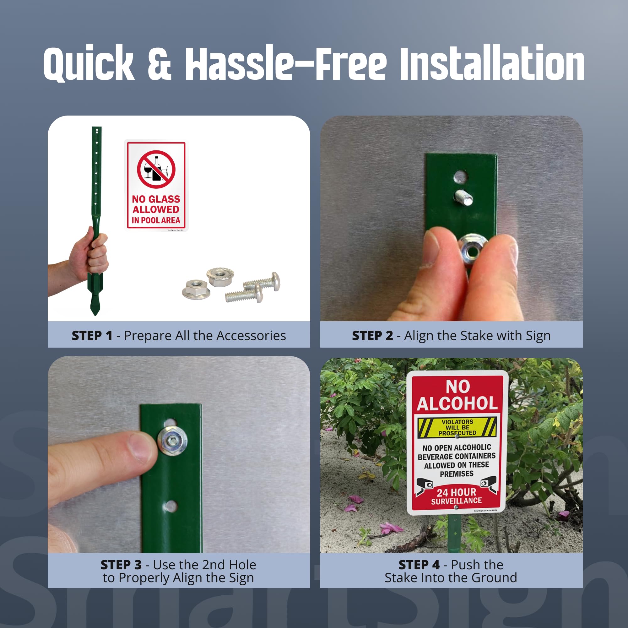 Graffiti kann auch entfernt werden. Einfache Installation: Müheloses Einsetzen in den Boden durch das konische Ende mit nur einem nach unten gerichteten Druck. Aluminiumschilder überdauern Kunststoffschilder, die leichter abgerissen werden können. Keine speziellen Werkzeuge oder anstrengendes Graben erforderlich. Das fertige Schild und der Stab sind 54,6 cm hoch. Klares UV-Laminat widersteht Chemikalien, UV-Strahlen, Wasser und Abrieb. Das Schilder-Set verfügt über einen biegsamen, emaillierten 45,7 cm langen Stahlpfahl. SartSign Placa De Etal "No Loitering - Violators Will Be Prosecuted To The Full Extent Of The NO TRESPASSING VIOLATORS WILL BE PROSECUTED SIGN – Get signs Sie halten auch rauen Außenbedingungen jahrelang stand. NO FIREARMS NO KNIVES NO DRUGS NO ALCOHOL VIOLATORS WILL BE PROSECUTED - American Sign Company Lieferumfang: Das Set enthält ein 25,4 x 17,8 cm großes Schild mit grünem Epoxidharzbeschichtetem 45,7 cm hohen Pfahl, plus die notwendigen Beschläge für die Montage. NO FIREARMS NO KNIVES NO DRUGS NO ALCOHOL VIOLATORS WILL BE PROSECUTED - American Sign Company