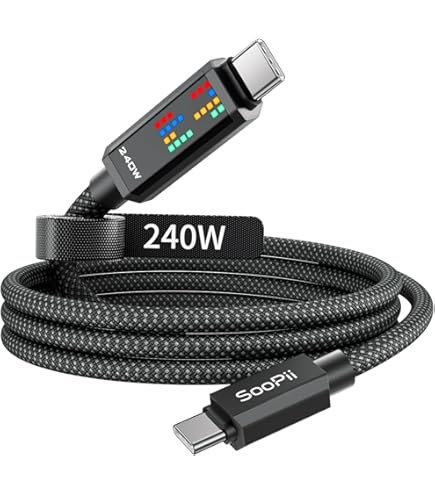 VisionSync 240W USB C Auf USB C Transparentes Kabel Mit LED-Anzeige Kompatibel Mit 140W 100W Schnellladung Für MacBook Pro,lPhone16/15/15Pro/15ProMax, Galaxy S23+/S23Ultra/S22,1.2m-1Packung,Schwarz
