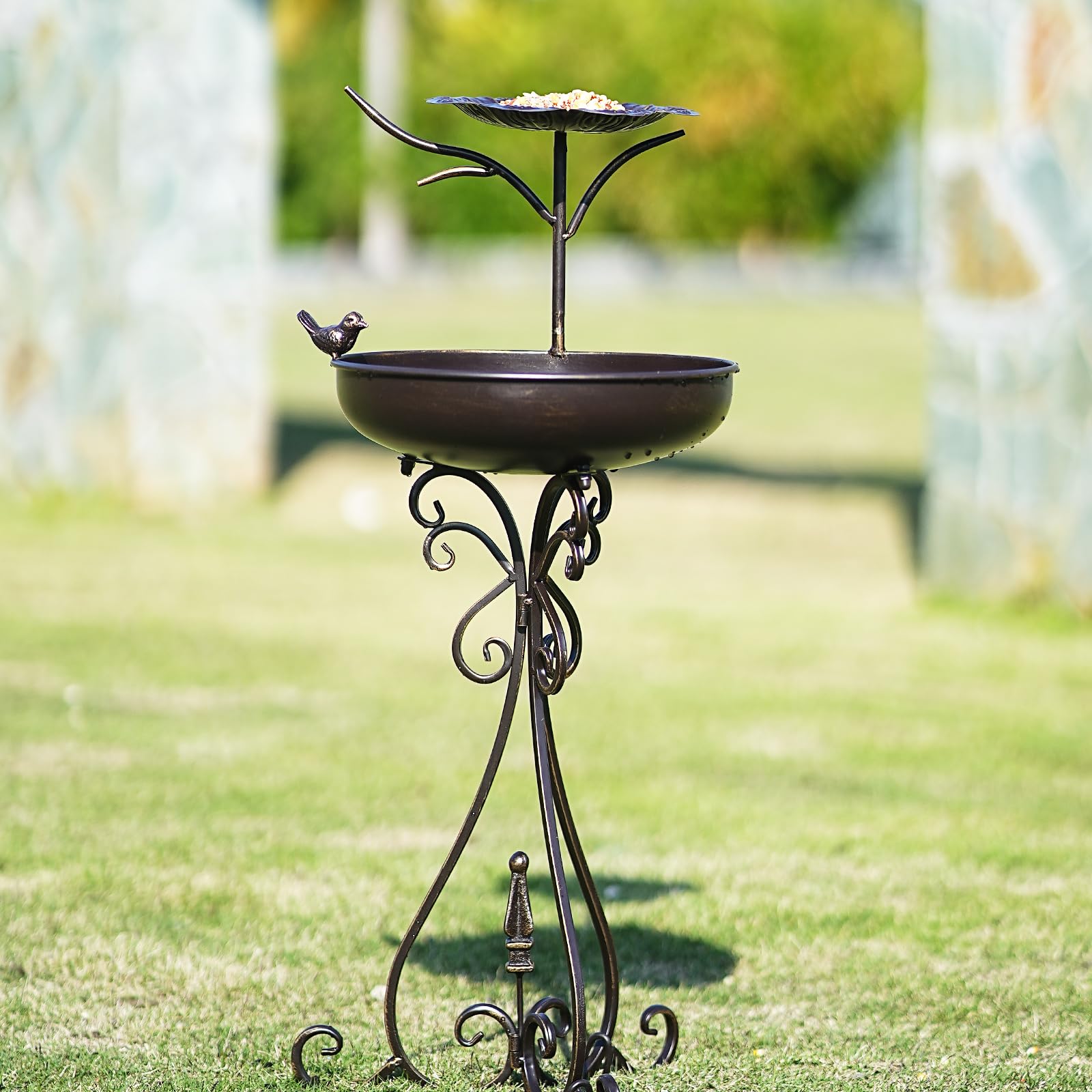 3-in-1 Vogeltränke Stehend Metall, 1 M Vogeltränke Stehend, Vogeltrankgefäße Für Die Terrasse, Vogelbad Garten, Hof- Und Rasendekoration (Antikgold