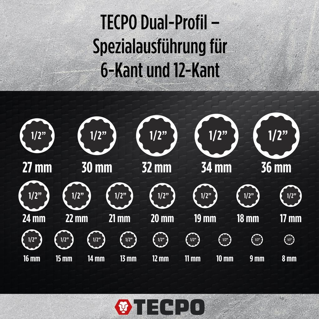 Präzise Passform mit Arretierstift-Aufnahme: Die integrierte Aufnahme für Arretierstift und Gummiring sorgt für einen sicheren Halt auf dem Werkzeug, ideal für vibrationsintensive Anwendungen an Fahrzeugantrieben. Wir bieten Ihnen gleich zwei große Produktbereiche: Autoteile und Werkzeuge. Aus der Werkzeugstadt Remscheid Vielzahn Nüsse für Antriebswellen 1/2 Zoll, 11-tlg., 44,99 TECPO VIELZAHN STECKSCHLÜSSEL SATZ 1/4 LANG NÜSSE 4-13mm STECKNÜSSER 12 Von Hobbyschrauber bis zu Profimechanikern bieten wir für jeden das passende Werkzeug Spezialwerkzeuge für jeglichen Werkstatt- und Industrieeinsatz Außerdem bekommen Sie bei uns Zubehör wie Beleuchtung, Öle und Pflegemittel: So können Sie ganz bequem die erforderlichen Teile, wie auch direkt das für Wartung und Reparatur benötigte Werkzeug in einem Schritt bestellen, TECPO – Dein Werkzeug., Dein Projekt. Unser Sortiment beinhaltet eine Vielzahl klassischer Autoteile und Werkzeuge, darunter Spezialwerkzeuge wie Drehmomentschlüssel, Glühbirnen sowie Zubehör für Werkstätten. TECPO – Ihr Spezialist für Werkzeuge Seit unserer Gründung begeistern wir unsere Kunden mit exzellenter Qualität und einem ausgezeichneten Preis-Leistungs-Verhältnis. Vielzahn Steckschlüssel Satz SW 8-36 mm, 1/2 Zoll, 31,99 Robuster Vielzahn Kraft-Steckschlüssel: Der TECPO Kraft-Steckschlüssel mit 1/2 Zoll Antrieb (12,5 mm) und 36 mm Schlüsselweite eignet sich ideal für den Einsatz an Antriebswellen und anspruchsvolle Reparaturarbeiten. TECPO – Dein Werkzeug., Dein Projekt. Faires Preis-Leistungs-Verhältnis - Höchste Qualitätsstandards 36 Nuss 36mm Kraft-Steckschlüssel-Einsatz 1/2" Von WIESEMANN 1893 I Sechskant Kraft Nuss Aus Q-40 Stahl I Geeignet Für Schlagschrauber I 81543 Nuss 36mm 1/2 Zoll Zwölfkant-Abtriebsprofil für vielseitige Anwendungen: Das Zwölfkant-Profil ermöglicht einen optimalen Kraftschluss und vereinfacht das Ansetzen an Schrauben oder Muttern, selbst bei beengten Platzverhältnissen.