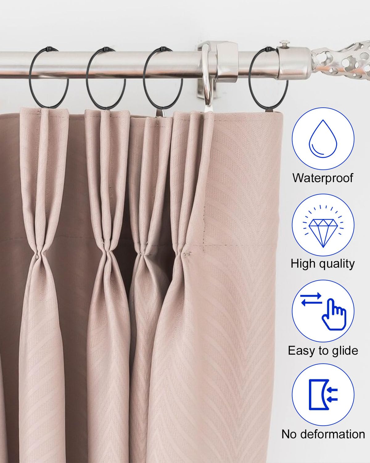 Duschvorhangringe, Vorhangaufhänger, Dusch-Clips, Edelstahl, Metall
