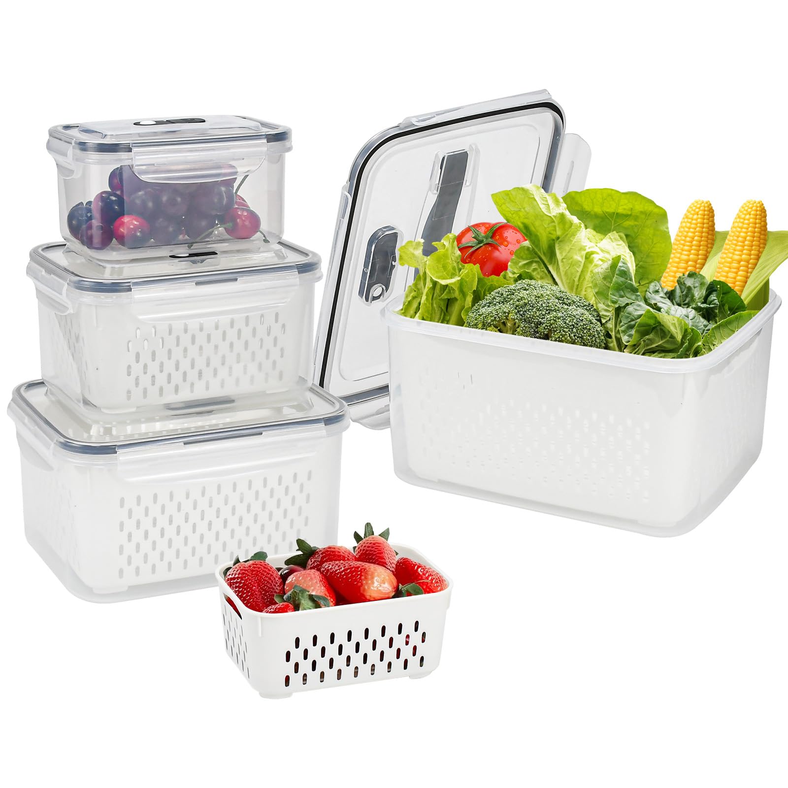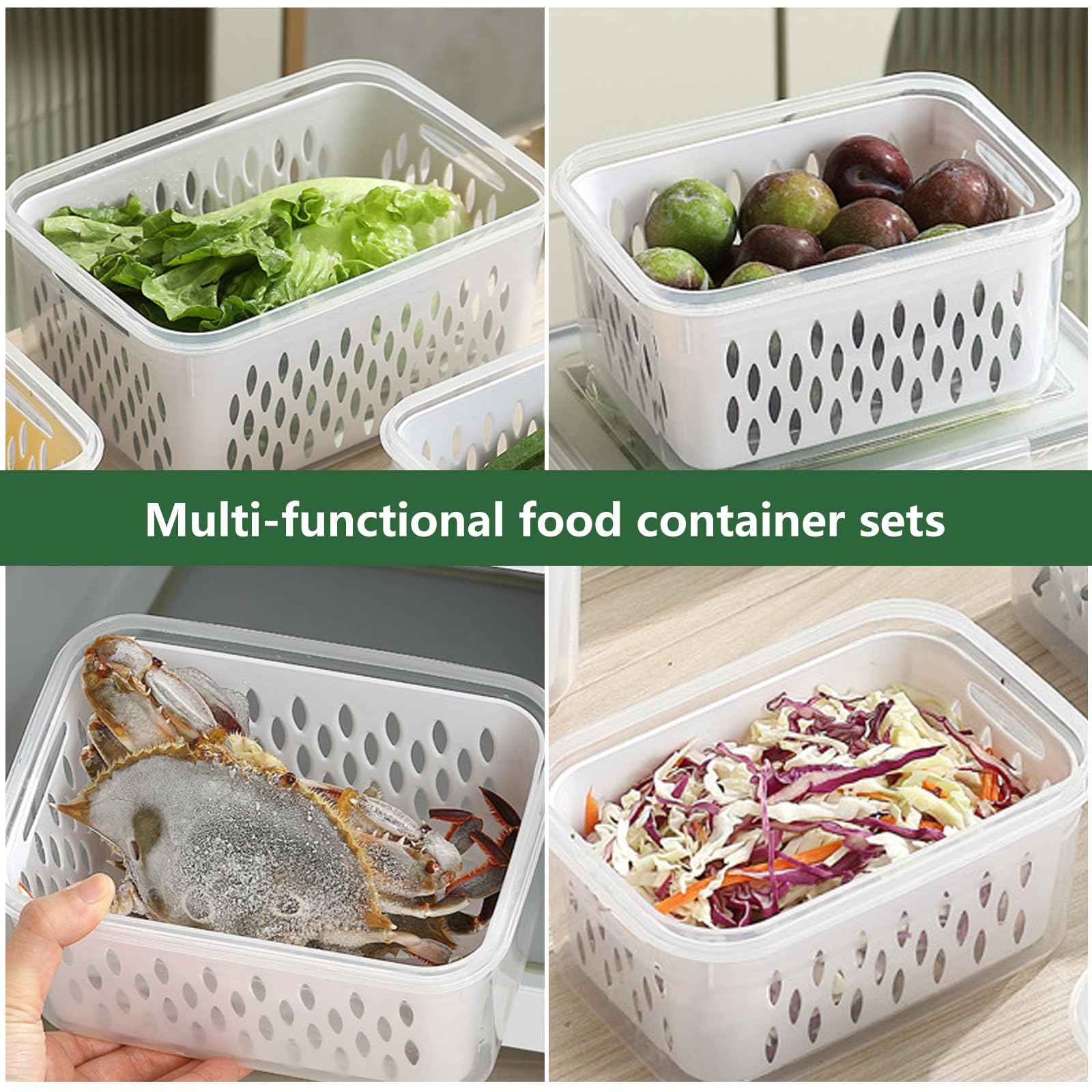 Rurunklee Frischhaltedosen Gemüse Mit Deckel Sieb, Vorratsdosen 7-teiliges BPA Frei, Frischhalteboxen Dicht Trennbar, Kühlschrank Organizer Set, Salat Beeren Aufbewahrung