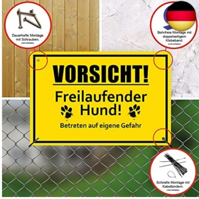hochwertiger Digitaldruck mit UV-Schutzlaminat Hundeschild als Gefahrenhinweis und Abschreckung vor unerlaubten Zutritt. Mehr Sicherheit ✓ individuelle Anbringung ✓ schneller Versand 4,6 von 5 Sternen Amazon Bestseller-Rang Nr., 1., 613., 208 in Baumarkt (Siehe Top 100 in Baumarkt), Nr., 28., 476 in Sicherheitsschilder Union Berlin Fanartikel 2 X Vorsicht Freilaufender Hund Schild | 30 X 20 Cm PVC-Kunststoff Warnung Vor Dem Hund 3mm Aluverbundplatte – ohne Bohrlöchern weitere Produkte in unserem Amazon-Shop zum Kleben oder Schrauben. Freilaufender Hund - Betreten auf eigene Gefahr! zum Kleben oder Schrauben. Schild mit hochwertiger, UV-beständiger Folie + Schutzlaminat Schild aus Hartschaum oder Aluverbund.