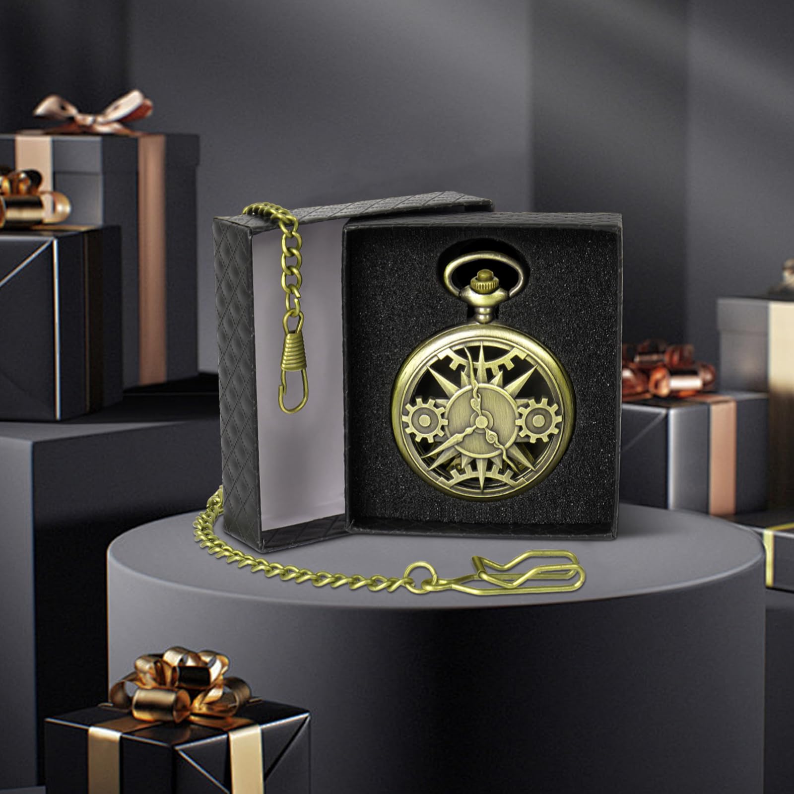 Mini DND Würfel Set, Mit Steampunk Drachenkopf Taschenuhr Schale
