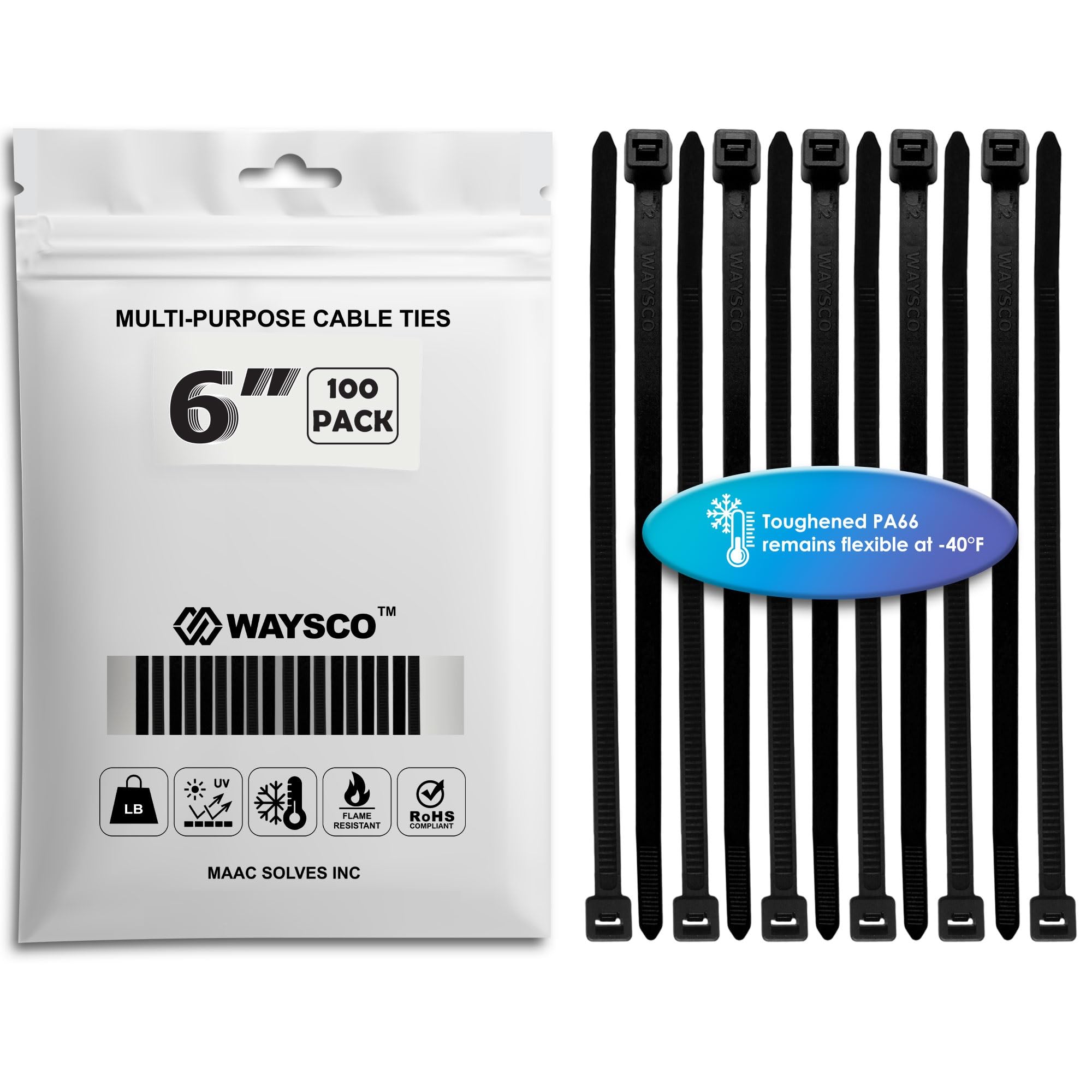 WAYSCO Kabelbinder 15,2 Cm / 0,5 Cm (100 Stück), Strapazierfähig, 29,5