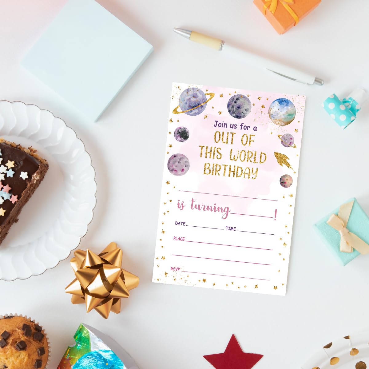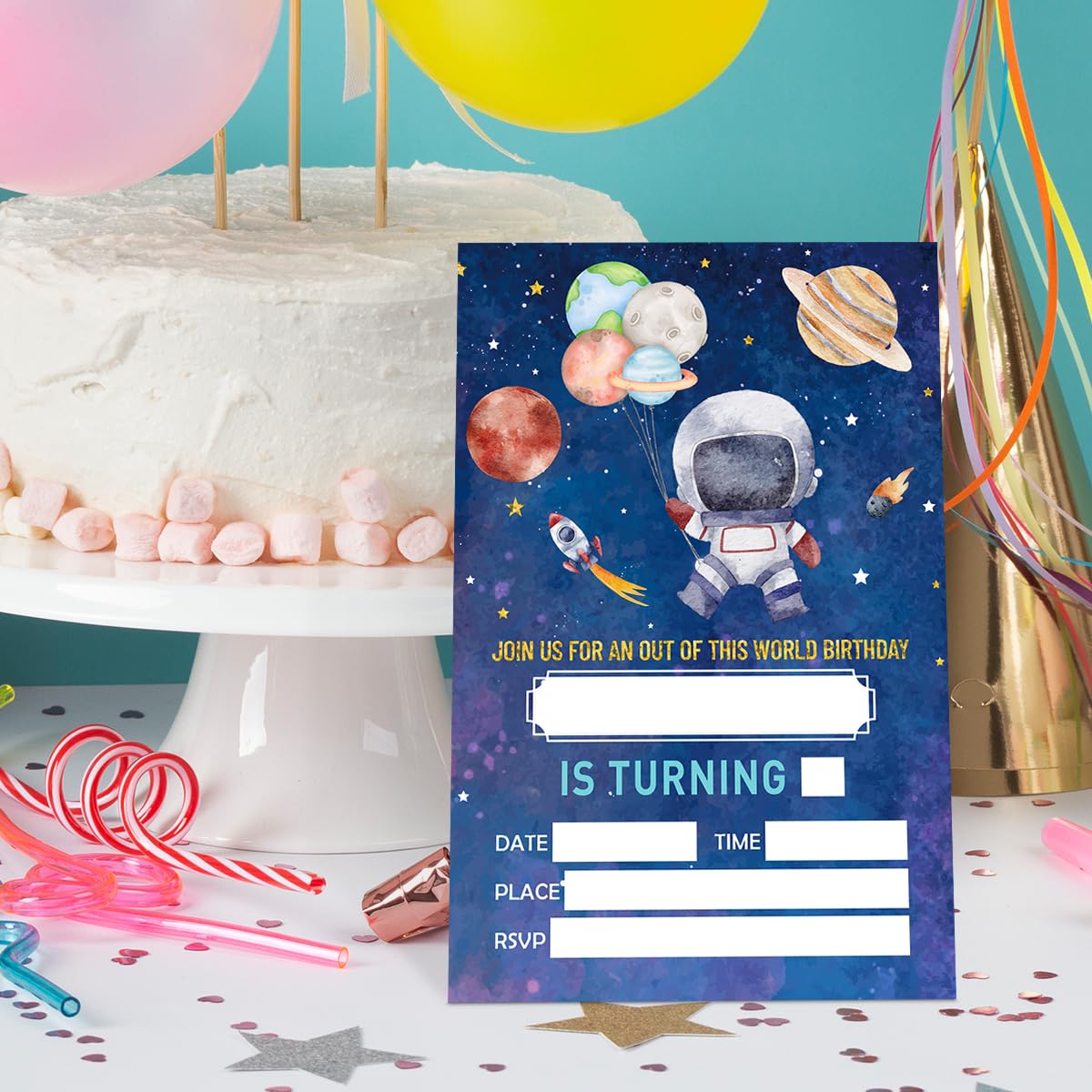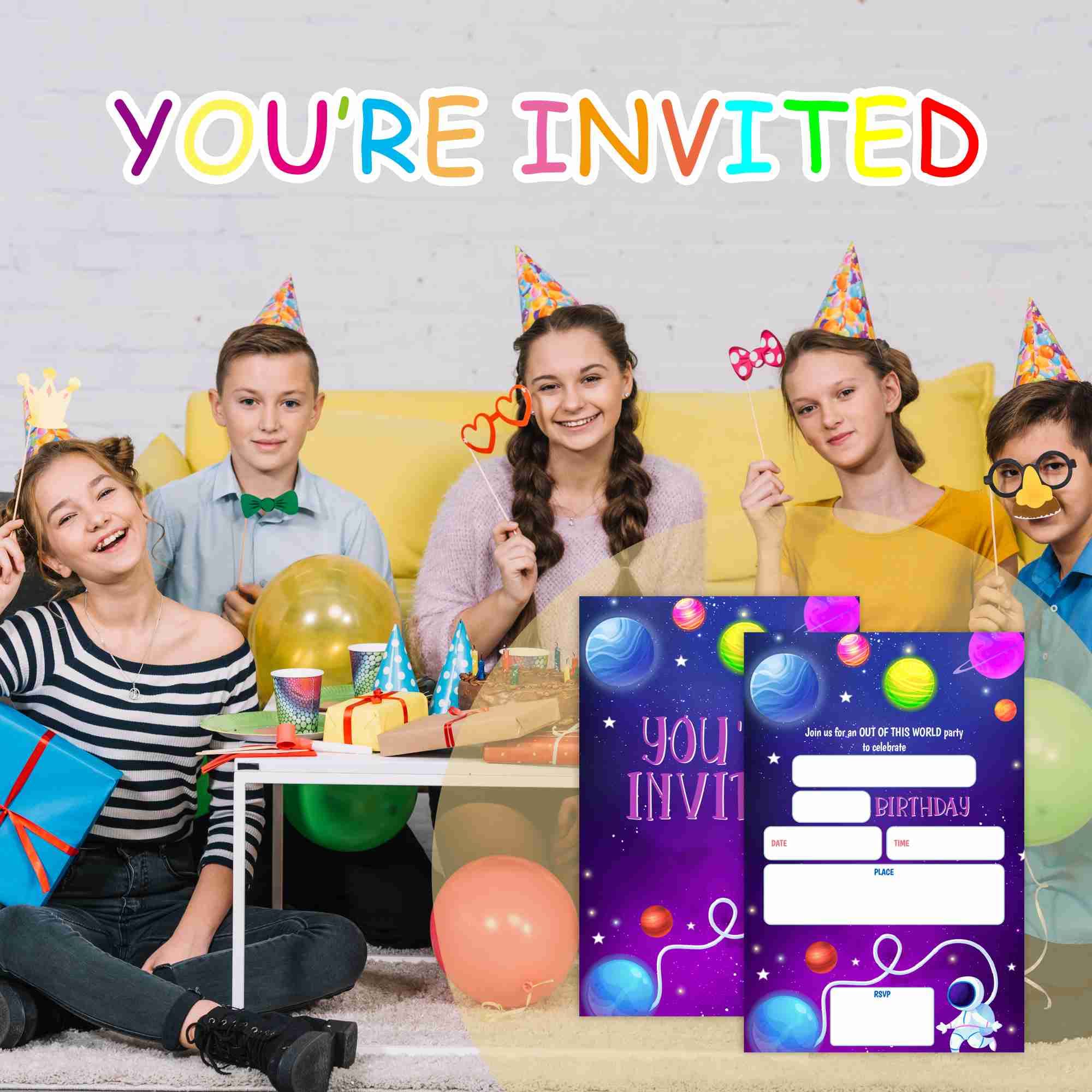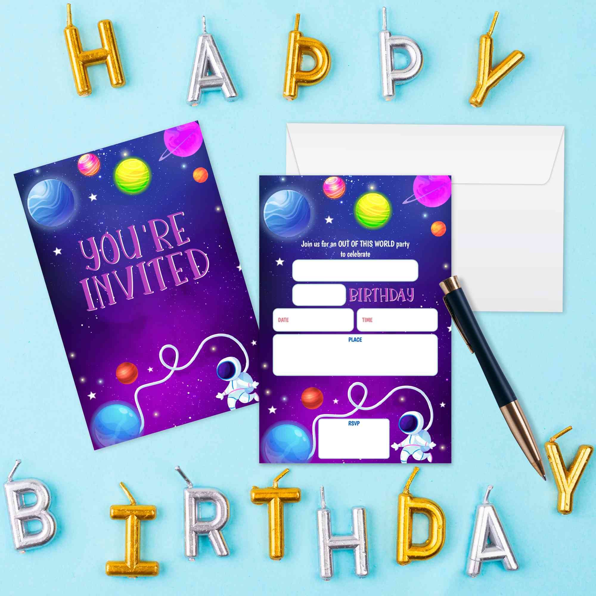 WUAWN 20 Weltraum-Geburtstagseinladungen Mit Umschlägen, Galaxy Space Fill – In Geburtstagseinladungskarten Für Jungen & Mädchen, Teenager, Kinder, Geburtstagsparty-Zubehör – A025