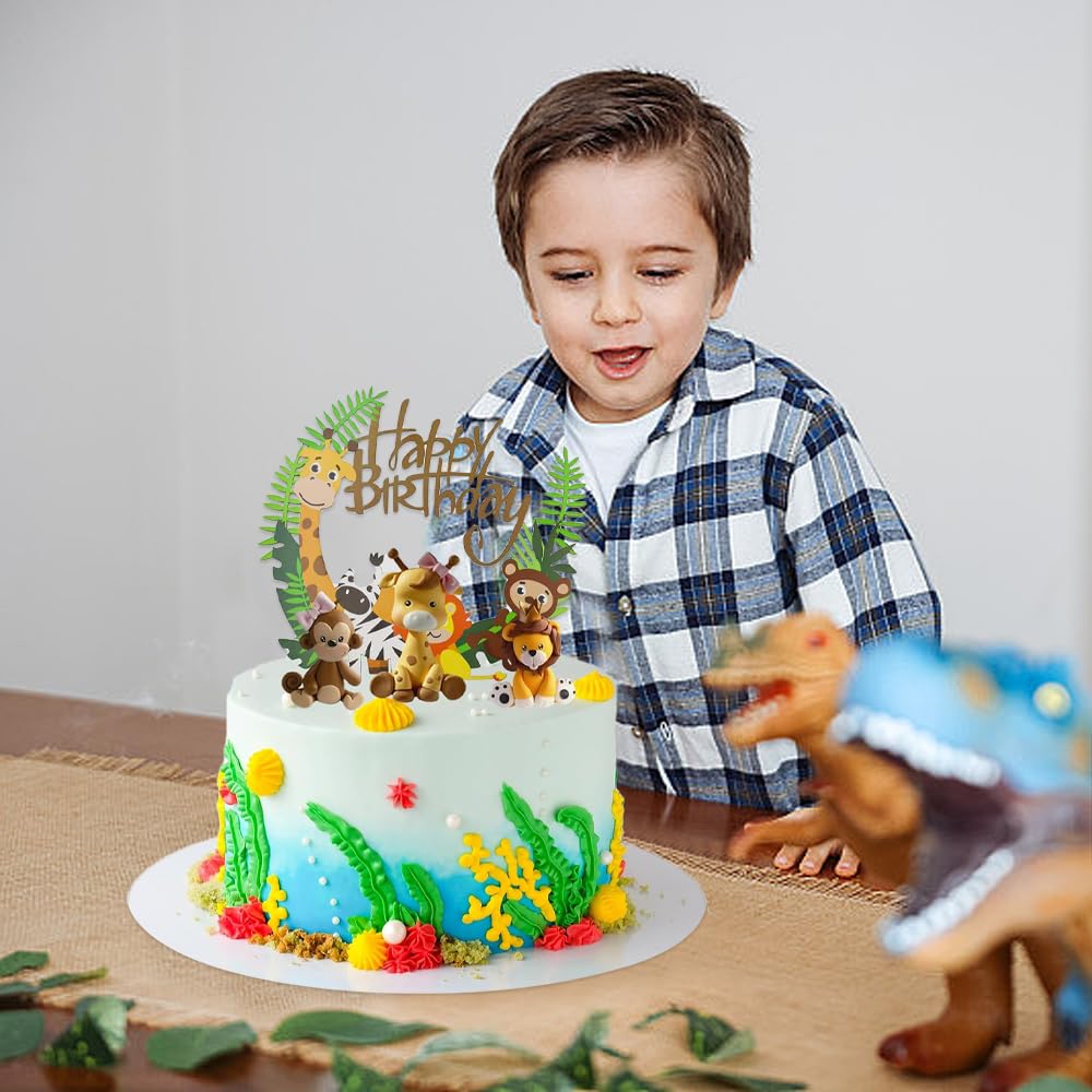 Waldtiere Tortendeko, 4 Stück Geburtstag Dschungel Tiere, Happy Birthday Cake Topper Zoo Safari Für Junge Mädchen