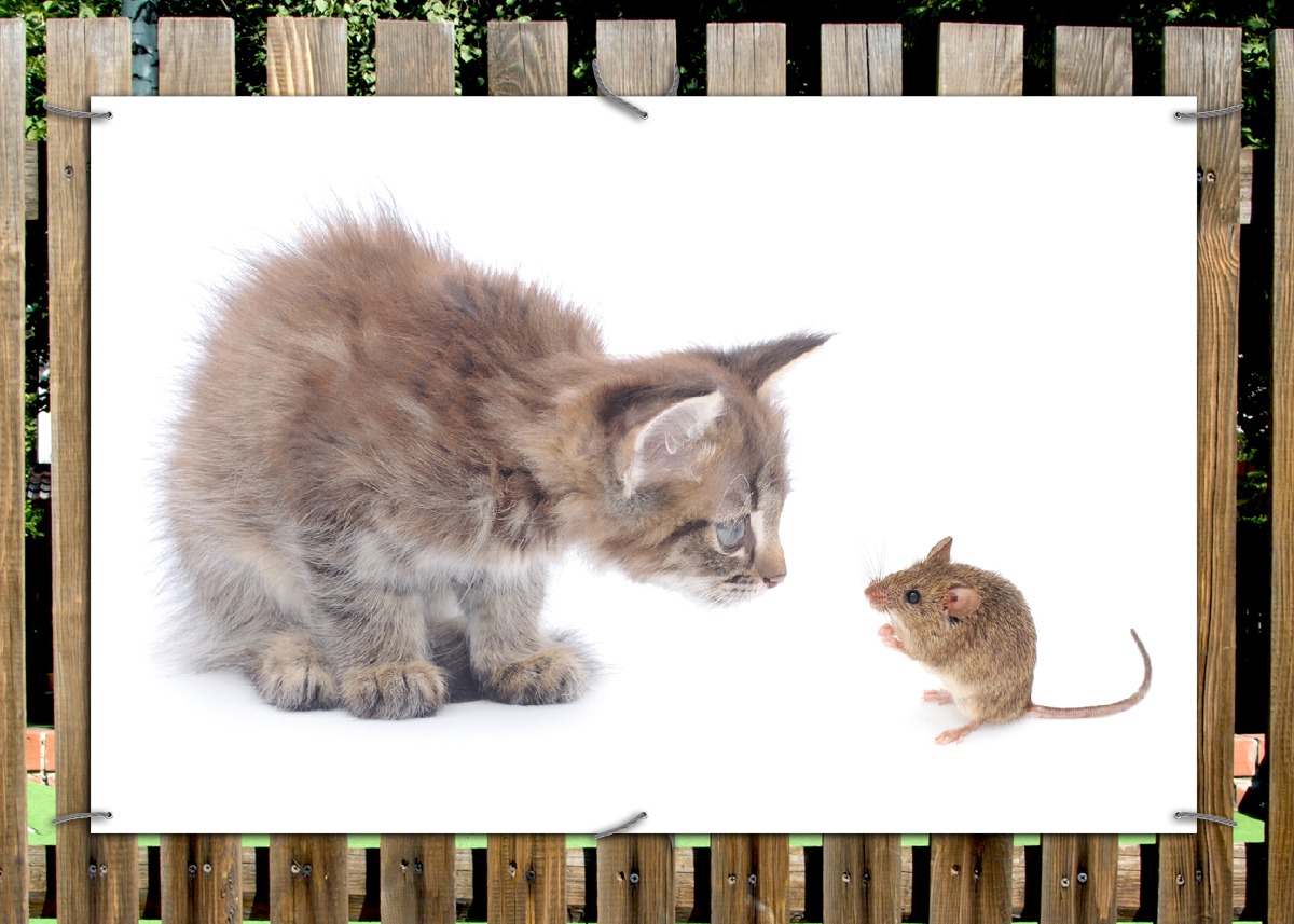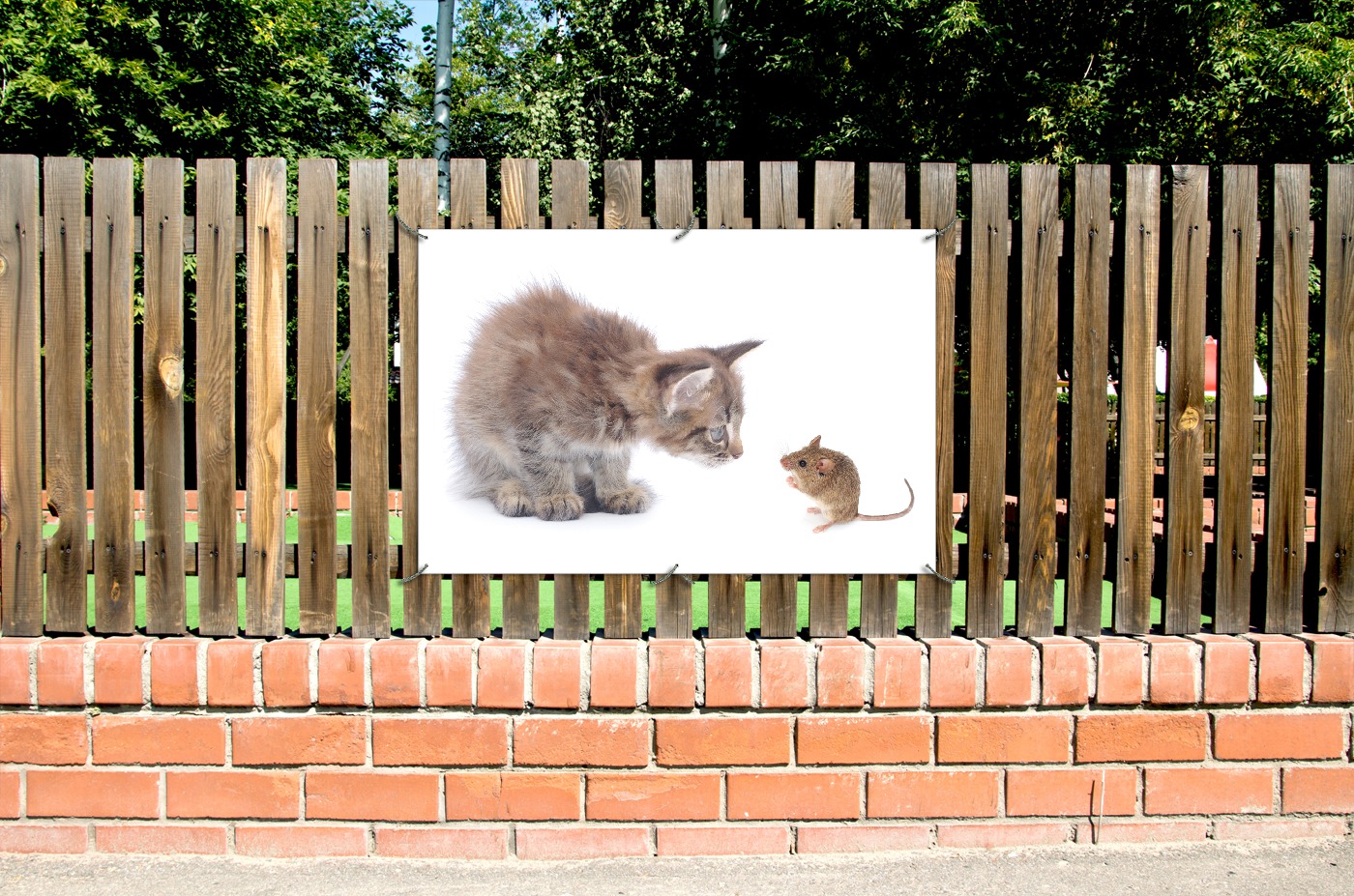 Wallario Sichtschutzzaunmatten Katze Und Maus Beim Spielen - Weißer