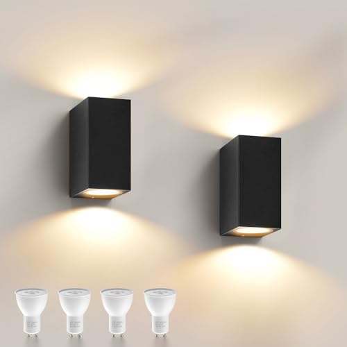 Wandleuchte Aussen Innen 2 Stück, IP65 Wasserdichte 10W Warmweiß 3000K Aluminium Eckig Außen Wandlampe Außenlampe Mit GU10 Glühbirnen Außenleuchte Für Garten Front Badezimmer Veranda Garage Anthrazit