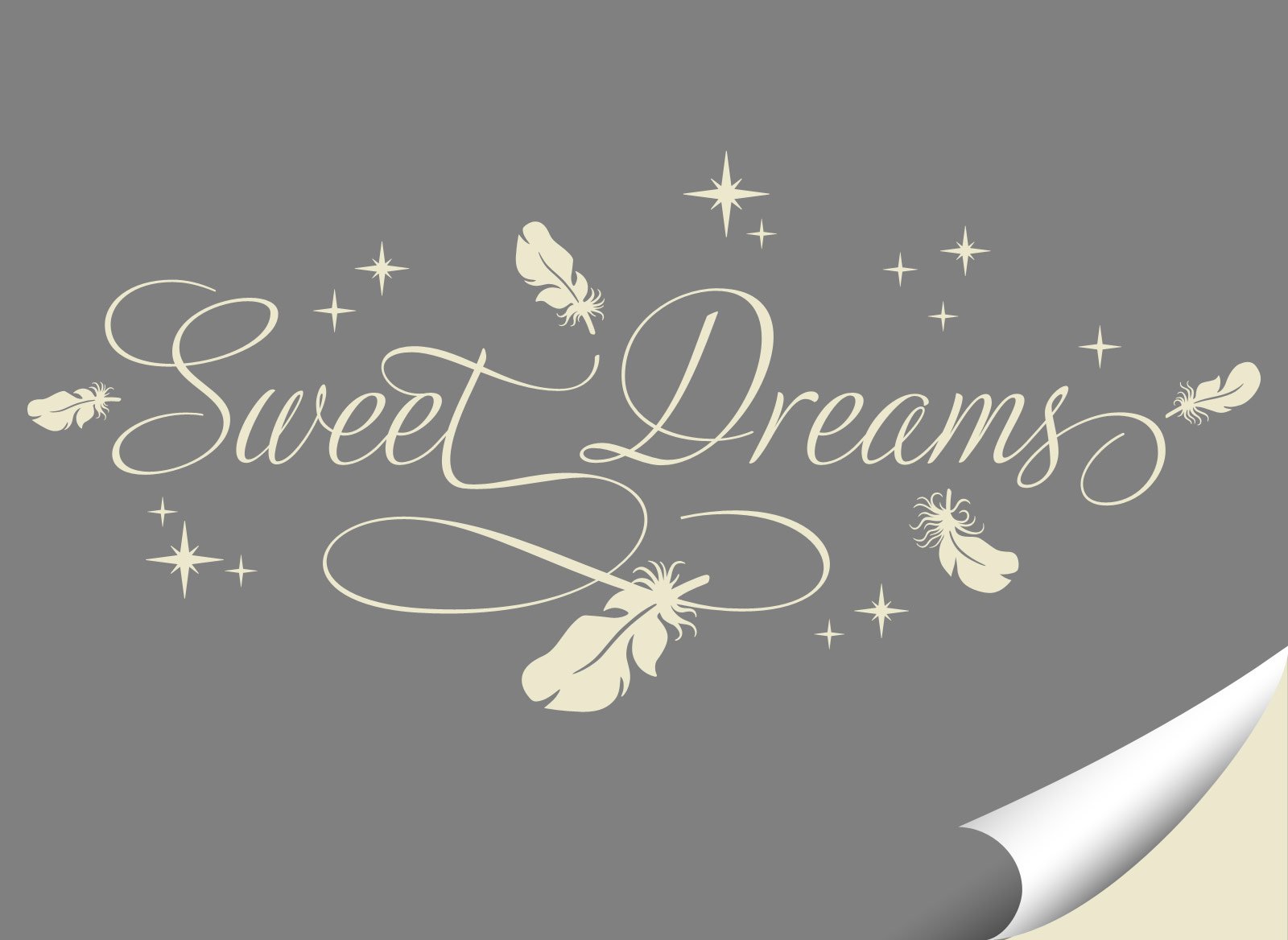 Wandora Wandtattoo Spruch Sweet Dreams I Cremeweiß (BxH) 127 X 58 Cm I Sterne Federn Schlafzimmer Kinderzimmer Sticker Aufkleber Wandaufkleber