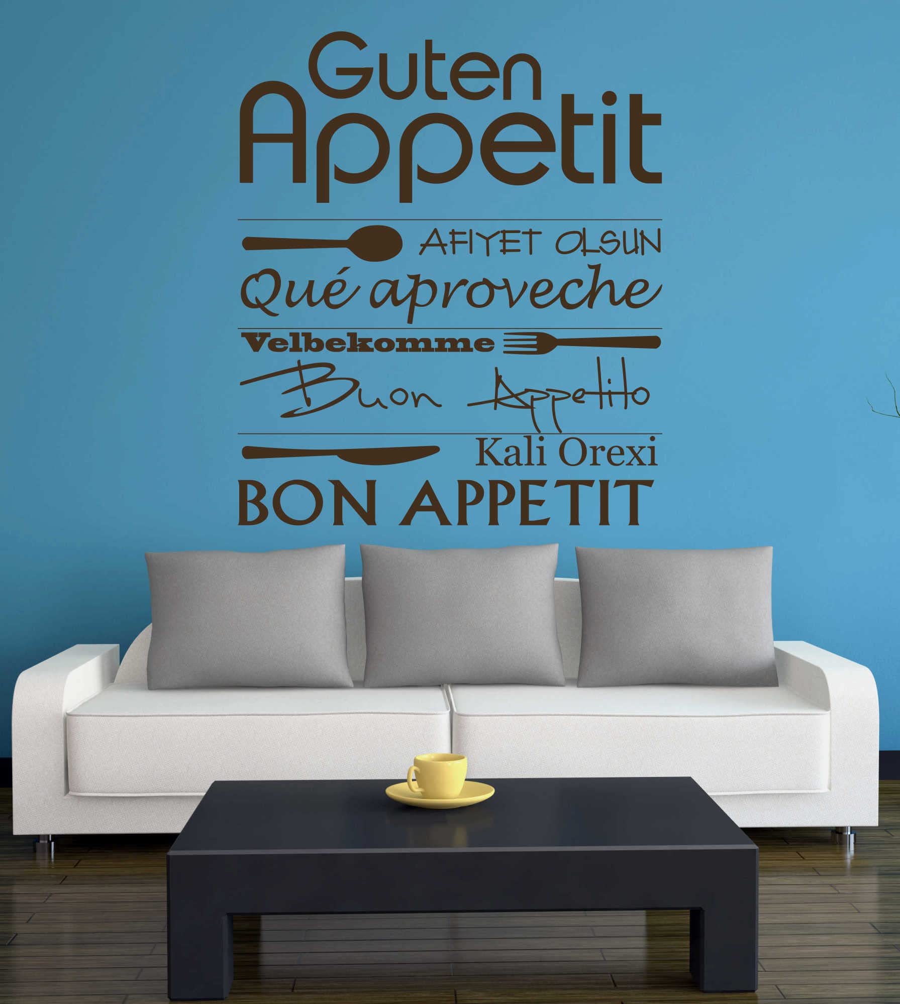 Wenn Sie Wert auf Farbtreue legen bestellen Sie bitte über unsere Hotline Farbmuster. Diese wird nach dem verkleben abgezogen bzw., wieder entfernt. Eine ausführliche Verklebeanleitung liegt jeder Lieferung bei. Wandtattoo Guten Appetit - Mahlzeit! | Deko für Esszimmer & Küche 08:00 - 16:00 Uhr) - Rufnummer: +49 (0) 6865 / 180741 Fragen Sie hierzu Ihren Fachhändler. Farben:Leider zeigt jeder Monitor die in diesem Angebot abgebildeten Farben unterschiedlich an, so das die gelieferte Farbe von der hier gezeigten Farbe abweichen kann. Mittels dieser Technik bleibt rein das Motiv/Schrift auf dem zu beklebenden Untergrund stehen. Ebenfalls stark Haftungsmindernt ist ein hoher Bindemittelanteil in Wohnraumfarben. Achten Sie bitte speziel auf Werbebotschaften/Schlagworte Ihres Untergrundherstellers (gleich ob Farb- oder Tapetenhersteller) wie z., B. Wandtattoo Bon Appetit Handschrift - wünscht allen einen guten Appetit Bitte beachten Sie das dieser Artikel nicht aufgrund einer Farbabweichung reklamiert oder zurückgesendet werden darf. Verklebbar auf Tapeten (auch Raufaser), Putze (kleine bis mittlere Körnung), Holz, Glas, Möbel und viele weitere ebene Flächen. Bei folgenden Inhaltsstoffen des Untergrunds kann es zu Haftungsproblemen von Wandtattoos kommen:Latex, Silikon, Lotus-Effekt und sonstige haftungsmindernde Technologien. Wandtattoo Deko Wandtattoo Guten Appetit Mit Kochmütze Wandtattoo Braun Selbstklebend (auch auf Raufaser und Putz)