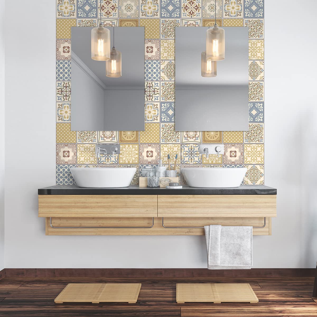✅ LANGLEBIG UND STRAPAZIERFÄHIG: Hochwertige Fotodrucke, nicht brennbar, geruchlos, hochtemperaturbeständig, Kratzer, Wasser, Reinigungsmittel und häufiger Verkehr. ✅ AUSGEZEICHNETE QUALITÄT - Der Bodenaufkleber für Betonfliesen ist ein rutschfestes Vinyl, das auf dem Deussus gedruckt und mit einem Schutzlaminat aus Kunststoff versehen ist. Dieser Fliesenkleber sorgt dafür, dass die Amtosphäre dieses Raumes angenehmer und benutzerfreundlicher wird. ✅ WANDAUFKLEBER: 80x120cm - 24 Stück 20 x 20 cm nachahmung vorgeschnittener selbstklebender zementfliesen. Fliesenaufkleber für Ihre Dekoration. Kleben Sie diesen Fliesenaufkleber an Wänden, Möbeln oder sogar auf Fenstern. Wohin kleben Sie diesen Dekoaufkleber? Dieser dekorative Aufkleber aus Zementfliesen ist perfekt für Ihre Küche oder Ihr Bad, um mehr Fantasie in Ihr Zuhause zu bringen. ✅ ORIGINALDEKOR: Schaffen Sie Originalität mit Fliesenbodenaufklebern und ihren wunderschönen Farbpaletten, Originaldrucken oder farbenfrohen Designs. Wandtattoo, Selbstklebend, Für Küche, Badezimmer, 24 Sticker Wir bieten Ihnen eine Übersicht von aktuellen Deals und Rabatten für clevere Einkäufe. Mit den Fliesenaufklebern schaffen Sie Originalität mit schönen Farbpaletten, Orginalgravuren oder bunten Zeichnungen, die Ihren Gästen gefallen.