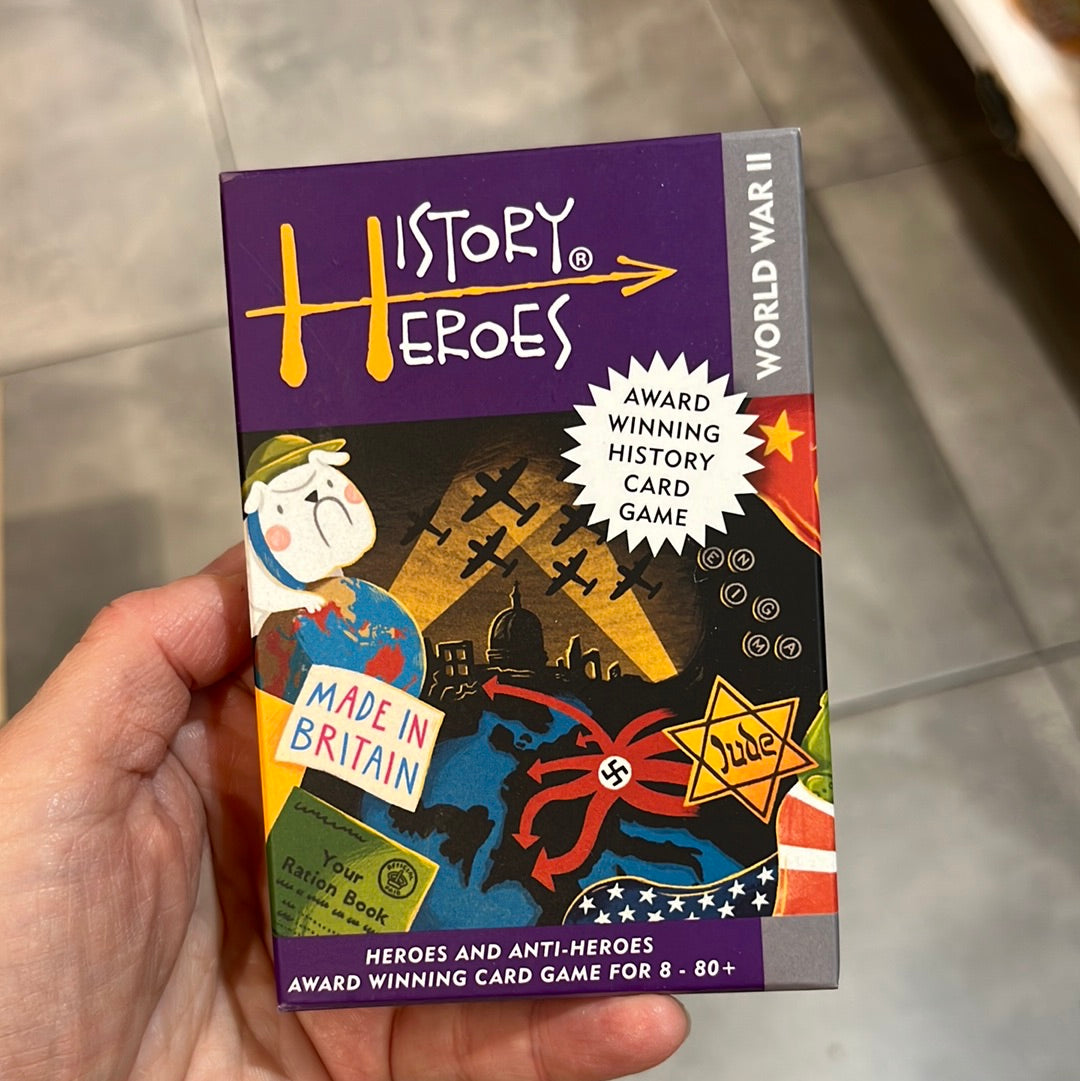 Testen Sie sich und entdecken Sie, wer am Zweiten Weltkrieg beteiligt war und ihn geprägt hat. Fantastisch illustriertes, preisgekröntes Familienkartenspiel im Taschenformat mit 40 r beutendsten Charaktere in r Geschichte s Zweiten Weltkriegs für alle Altersgruppen von 8 bis 80 Jahren Ein bewegendes, lehrreiches Kartenspiel über 40 der bedeutendsten Einzelpersonen und Gruppen des Zweiten Weltkriegs auf separaten, wunderschön illustrierten Karten. Kartenspiel Heroes for sale, 7,99 Ein großartiges, preisgekröntes Familienspiel für alle Altersgruppen von 8 bis über 80 Jahren zum gemeinsamen Spielen. Wählen Sie Ihren Wissensstand von Grün bis Rot: von einfach bis schwer. Family s History Heroes - World War One – Inspire Education Card Game Gestalten Sie das Spiel behutsam und lehrreich oder boshaft wetteifernd! Discover the heroes (and anti-heroes) of World War 2 by winning their cards and the game