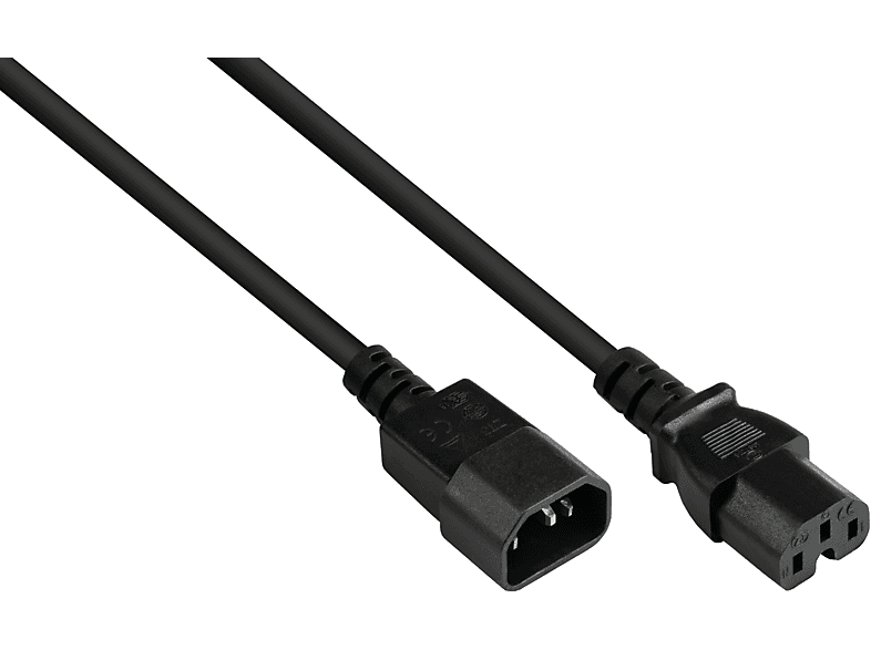 Warmgeräteverlängerung C14 180° - C15 180°, Schwarz, 1 M, 3 X 1,00 Mm²