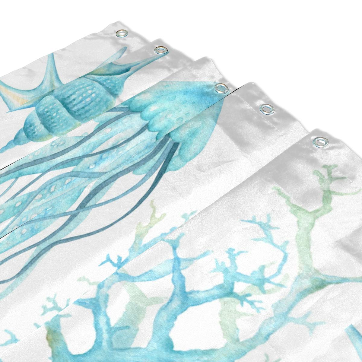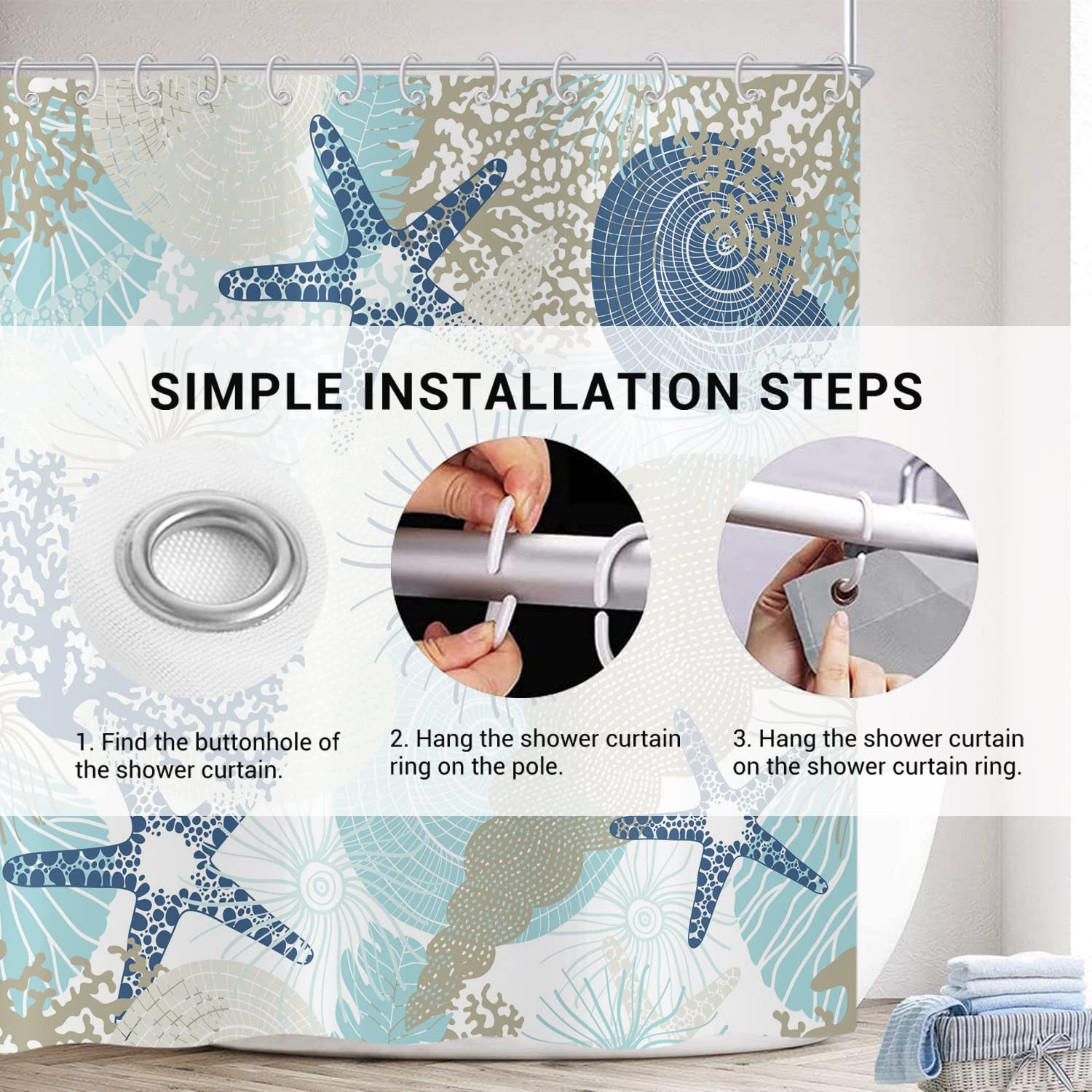 Sylbapstry Strand-Duschvorhang, Stoff, Waschbar, Muschel, Seestern, Badezimmerdekoration, Digital Bedruckt, Lichtecht, Blau 183 X 183 Cm