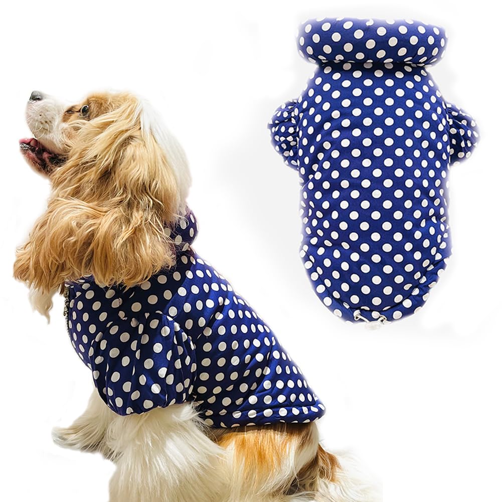 Hunde-Wintermantel Mit Punktemuster: Warm, Winddicht, Wasserdicht, Mit Reißverschluss, Puffer Für Kaltes Wetter, Haustierbekleidung Mit 3-lagigem Fleece-Futter Für Kleine Hunde (Größe M, Blau