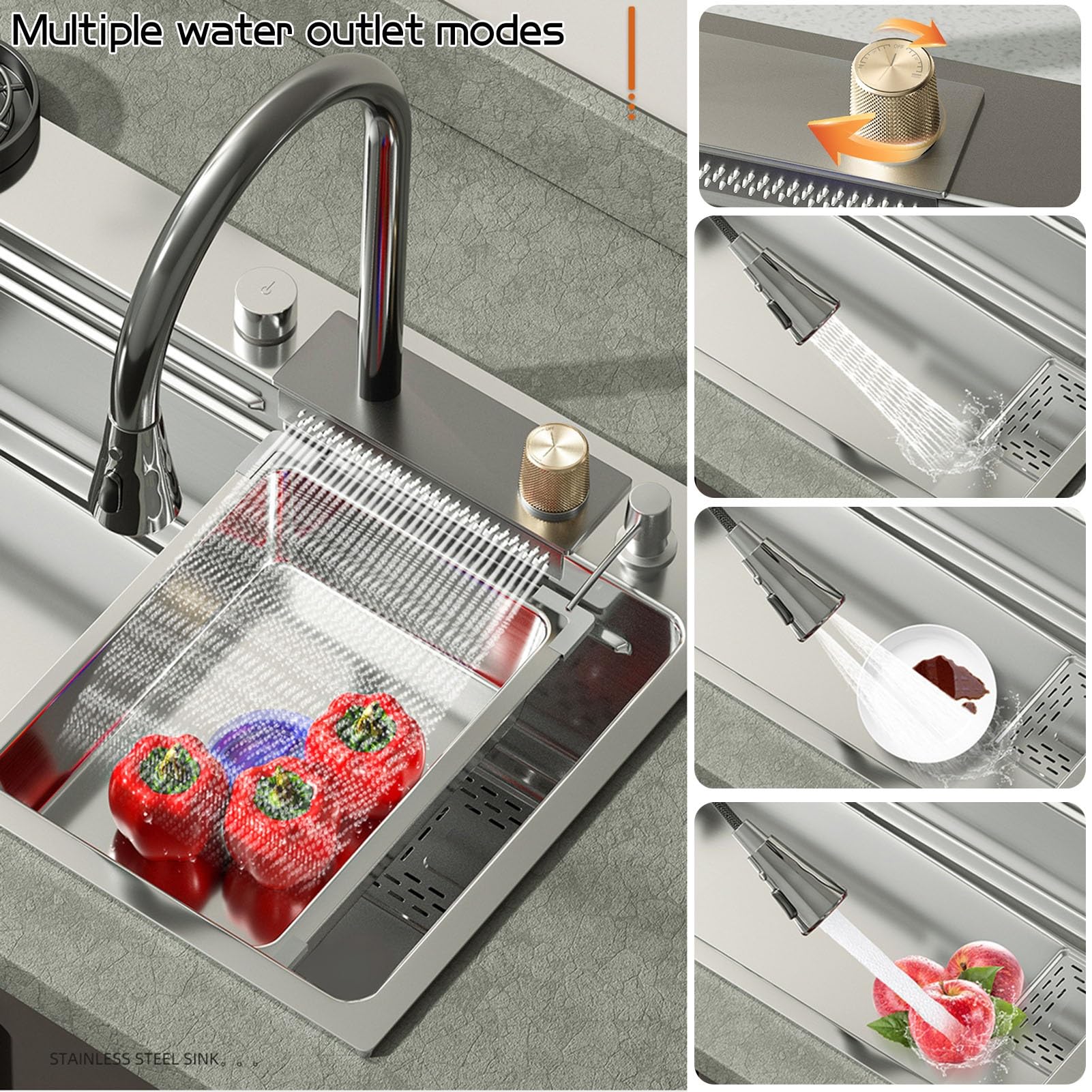 Fatspas Wasserfall-Küchenspüle Mit Wasserhahn, Edelstahl-Unterbau