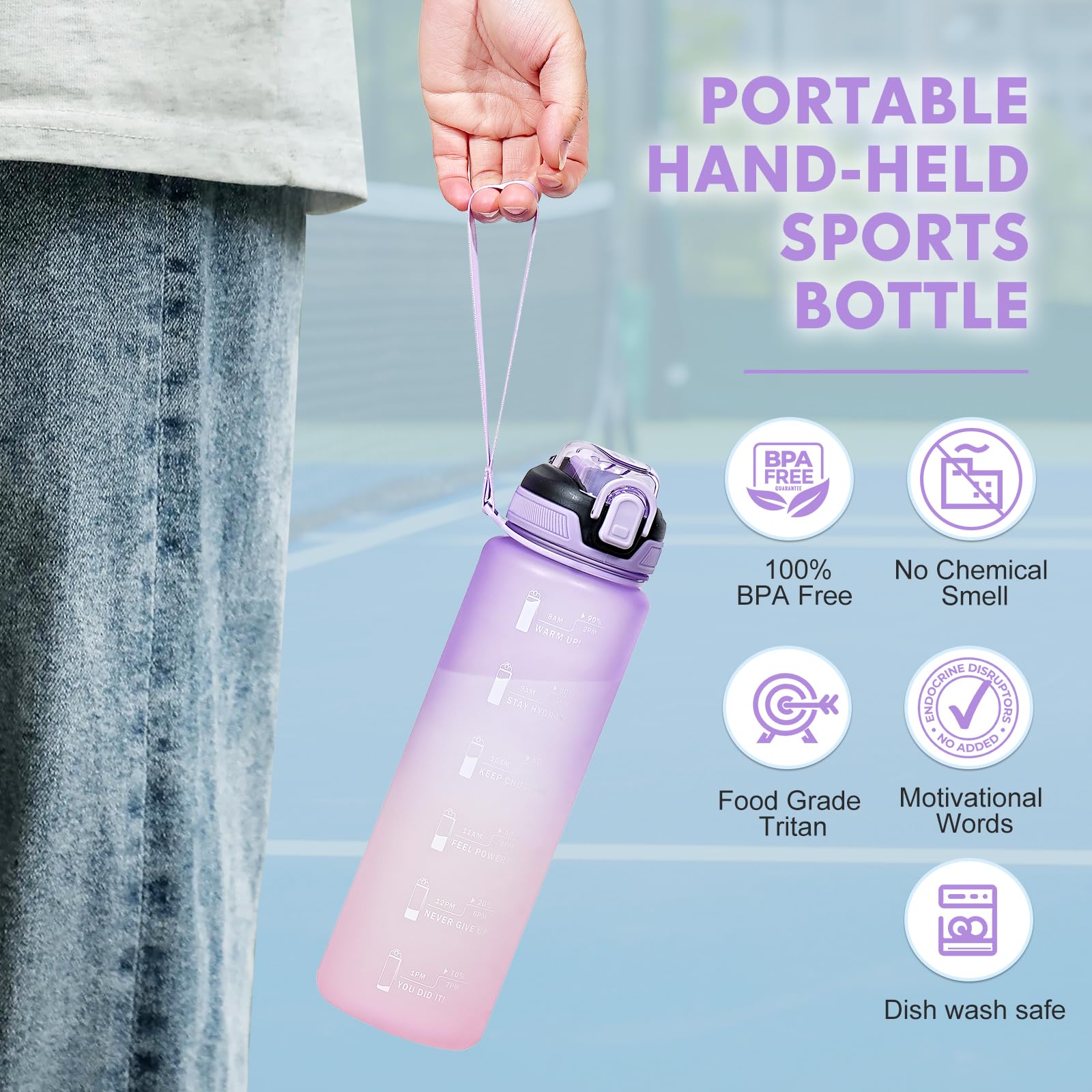Wasserflasche Mit Strohhalm, 1 L, Jungen-Wasserflasche Mit Strohhalm, Auslaufsicher, Sport-Wasserflasche, Kunststoff-Trinkflaschen, Giftfrei, BPA-frei