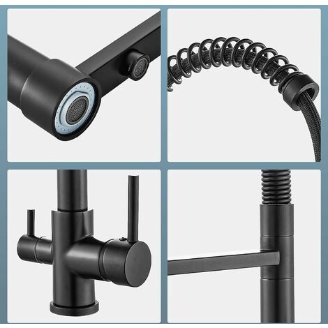 3 Wege Wasserhahn, Flexible Armatur Küche Kupfer Küchenarmatur Mit Herausziehbarer Dual-Spülbrause Küche Wasserhahn Spültischarmatur