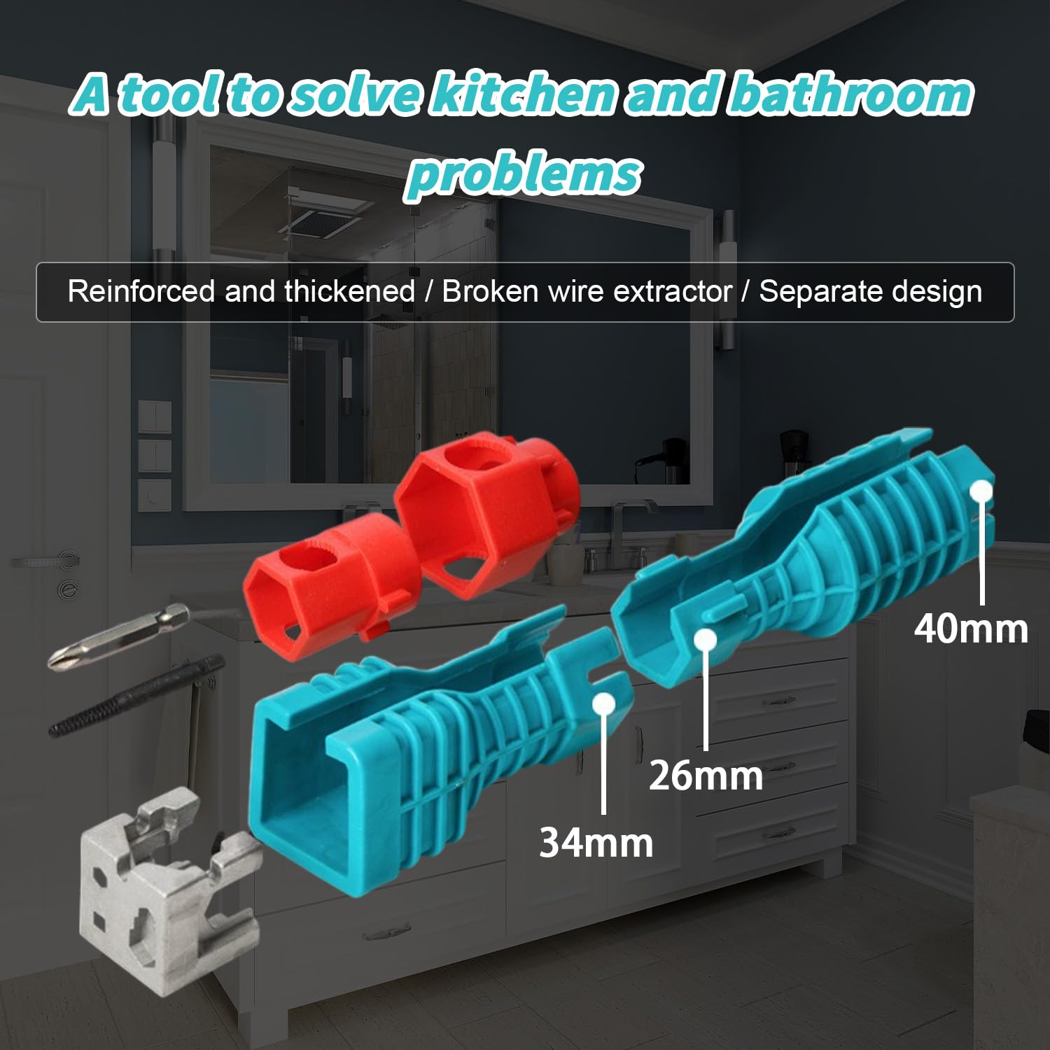 Cimown Waschbecken Installer Werkzeug, Spülenschlüssel Dieses Set umfasst 7 verschiedene Größen, die für eine Vielzahl von Muttern und Armaturen geeignet sind. Der vierzackige Inbusschlüssel wurde speziell für Arbeiten unter der Küchen- und Badezimmerspüle entwickelt und gewährleistet die Kompatibilität mit den meisten Wasserhähnen 【Langlebig & Stabil】Unser multifunktionaler Spülenschlüssel besteht aus hochwertigem, verschleißfestem legiertem Stahlmaterial, das stärker, haltbarer, verschleißfester und weniger anfällig für Rost ist als gewöhnliche Schraubenschlüssel. 【Multifunktionaler Schraubenschlüssel】7 Standardschnallen können für verschiedene Arten und Größen von Schlauchmuttern verwendet werden. Es kann weit verbreitet für die Wartung und Montage von Waschbecken und Armaturen verwendet werden und ist sehr geeignet für den Einsatz in Küchen und Badezimmern. 【Leicht zu tragen】Es ist klein und leicht, sehr einfach zu tragen und zu lagern, nimmt nicht viel Platz ein, Installation und Konstruktion müssen nicht mehr viele Werkzeuge tragen. Es eignet sich perfekt für die Wartung von Sanitäranlagen und Wasserleitungen und wird zu einem unverzichtbaren Werkzeug für eine Vielzahl von Anwendungen. Multifunktionaler Waschbeckenschlüssel, Kassette, Acht-in-Eins, universeller Wasserhahnschlüssel für den Haushalt, Werkzeugset, verstellbarer Schraubenschlüssel Lösen Sie das Installationsproblem in engen Räumen, sparen Sie Aufwand und machen Sie es bequemer. 2-in-1 Kohlenstoffstahl Spülbecken-Wasserhahn-Schlüssel & Waschbeckenschlüssel – 204 Mm Lang, M34-40 Schlüsselsatz, Langlebiger Muttern- Und Schraubenschlüssel Für Einfache Montage Und Reparatur Korrosionsbestandiges Sanitarwerkzeug G 601100102730611