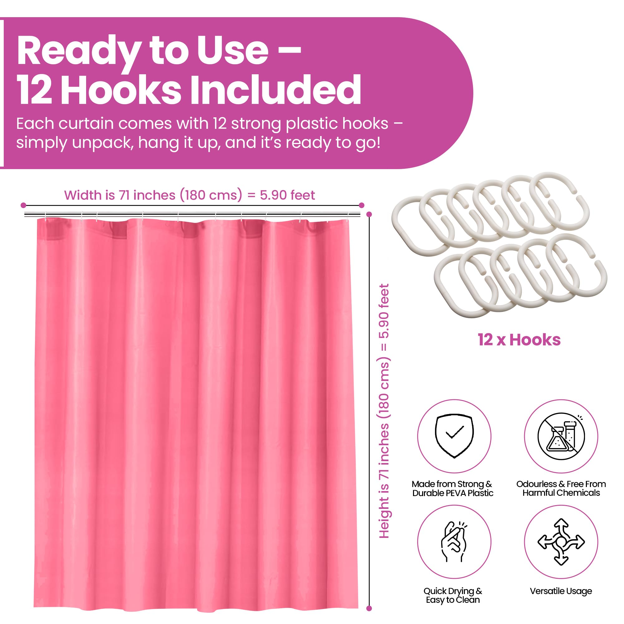 🚿 [PFLEGELEICHT]: Kann bei 30° gewaschen und kalt gebügelt werden, nicht im Trockner trocknen oder bleichen Erhältlich in 180 x 180 cm und 180 x 200 cm. Eine Reihe von hellen, lebendigen und interessanten Designs in zwei verschiedenen Größen bedeutet, dass es einen Duschvorhang gibt, der zu allen Badezimmer-Arten und -Dekor passt. Von Schuhen bis zur Kleidung, von Sportgeräten bis zu Accessoires. Mit dem beschwerten Saum hängt der Duschvorhang schön gerade und liegt nicht zur Badewanne an. Die Duschvorhänge sind super haltbar und pflegeleicht, bei 30°C waschbar, jedoch NICHT für Trockner geeignet 🚿 [HOCHWERTIGES MATERIAL]: WedDecor-Duschvorhänge bestehen aus hydrophobem Polyestermaterial, sind vollständig wasserdicht und in einer Reihe attraktiver Designs und unifarbener Farben erhältlich, die zu Ihrer Badezimmereinrichtung passen 🚿 [Design]: Alle werden mit 12 robusten Kunststoffhaken geliefert, die an den rostfreien Metallösen befestigt werden können. Besonderheiten: Entworfen, um sauber und hell zu bleiben. Die Aufhängelöcher in diesen Premium-Duschvorhängen sind mit rostfreien Ösen verstärkt und in Kombination mit den 12 langlebigen Kunststoffhaken, die mit den Vorhängen geliefert werden, können Sie sicher sein, dass Sie eine lange Lebensdauer und ein perfekt angeordnetes Aussehen haben. Strapazierfähig und reißfest. Duschvorhang Rosa WedDecor Gardine Badezimmer-Duschvorhang, Wasserdicht, Schimmelresistent, Strapazierfähig, 100 % Polyestergewebe, Vorhänge Mit 12 Vorhanghaken, 180 Cm X 200 Cm, Grau Und Weiß Duschvorhang 100x180 Unsere Duschvorhänge sind direkt aus der Packung gebrauchsfertig (bei Bedarf in lauwarmem Wasser einweichen, um Falten zu entfernen) Verstärkte Aufhängelöcher für zusätzliche Haltbarkeit. Waschanleitung Kann bei 30° gewaschen und bei niedriger Temperatur gebügelt werden, nicht im Trockner trocknen, nicht bleichen. WedDecor Badezimmer-Duschvorhang, wasserdicht, schimmelfrei, schimmelresistent, strapazierfähig, 100 % Polyester, waschbar und abwischbar, mit 12 Vorhanghaken, rosa Blütenblättern, 180 x 200 cm Duschvorhang Duschvorhänge Textil 100 PES Antibakteriell Schimmelfrei in Sroda Slaska | Möbel
