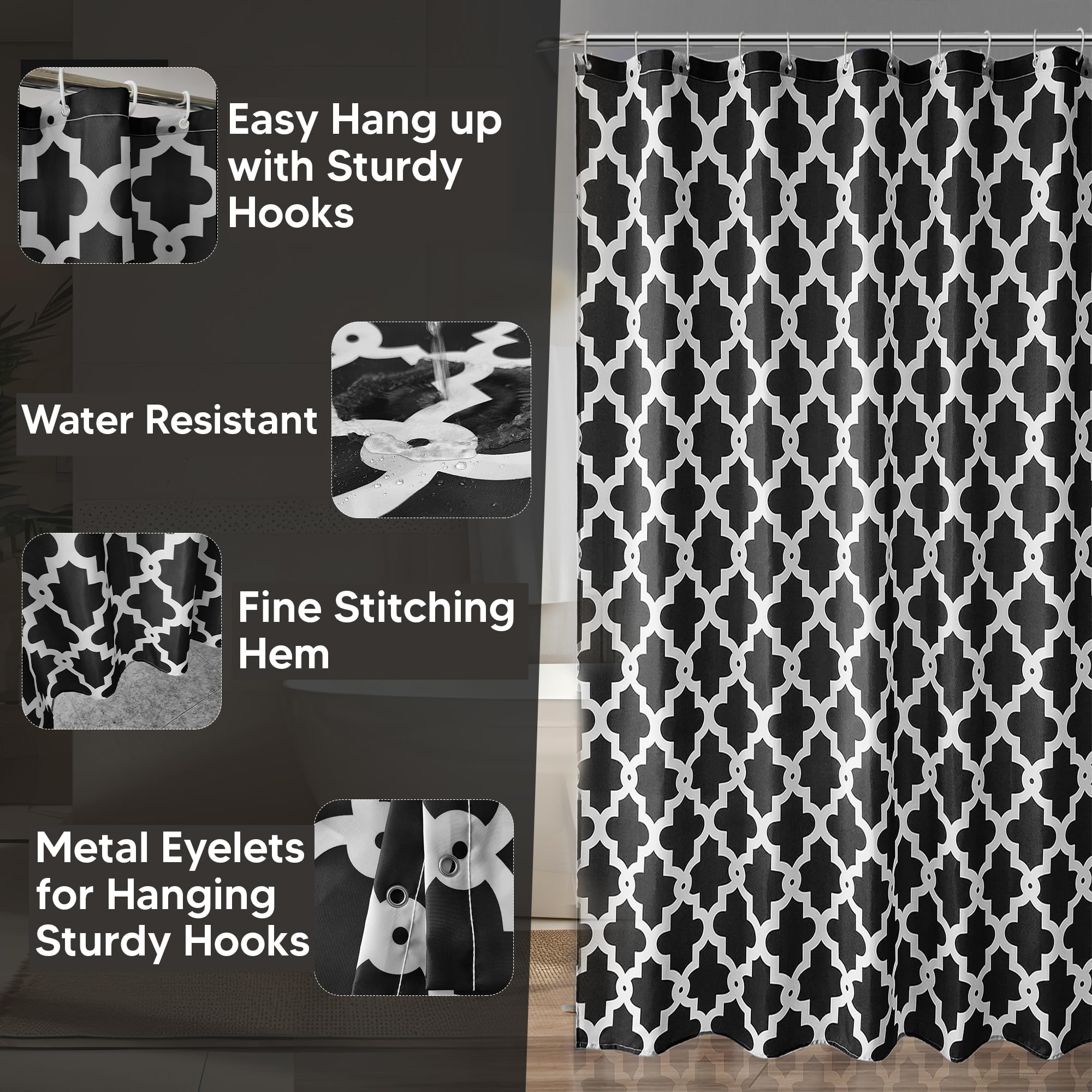 WedDecor Gardine Badezimmer-Duschvorhang, Wasserdicht, Schimmelresistent, Strapazierfähig, 100 % Polyestergewebe, Vorhänge Mit 12 Vorhanghaken, 180 Cm X 200 Cm, Grau Und Weiß