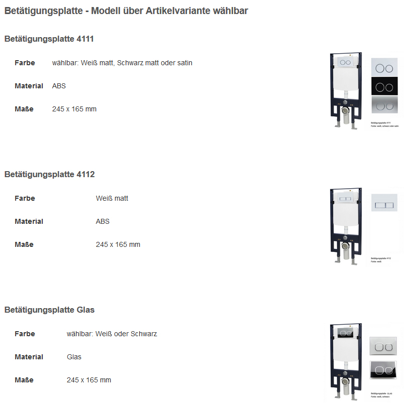 Betätigungsplatte 4112 Farbe Weiß matt, Material ABS, Maße 245 x 165 mm Geberit Wc Set Komplettset Wc-Komplettpaket 34: WC B-8030 Weiß Mit Soft-Close Sitz & Sanitärmodul Bernstein Wc Spülrandlos Höhenverstellbares Vorwandelement mit Unterputz-Spülkasten mit Betätigung vorne kielle Genesis - Set Vorwandelement, WC Oudee mit Softclose-Sitz und... Betätigungsplatten zur Auswahl Betätigungsplatte 4111 Farben: Schwarz matt, Weiß matt oder Satin, Material ABS, Maße 245 x 165 mm Betätigungsplatte Glas Farben Weiß oder Schwarz, Material Glas, Maße 245 x 165 mm Das Set beinhaltet: WC-Schüssel, langsam schließenden Klosettsitz, Schallschutzmatte, WC-Vorwandelement C201 und WC-Betätigungsplatte in Gold. Kostenlose Lieferung innerhalb von 3-6 Arbeitstagen.30 Tage Rückgaberecht - kostenlose Abholung! 2 Jahre Herstellergarantie auf das ganze SET Wand-Hänge-WC Bernstein NT2039 Schwarz glänzend Softclose-Sitz Standard Das Set beinhaltet: WC-Schüssel, langsam schließenden Klosettsitz, Schallschutzmatte, WC-Vorwandelement C201 und WC-Betätigungsplatte in Schwarz.