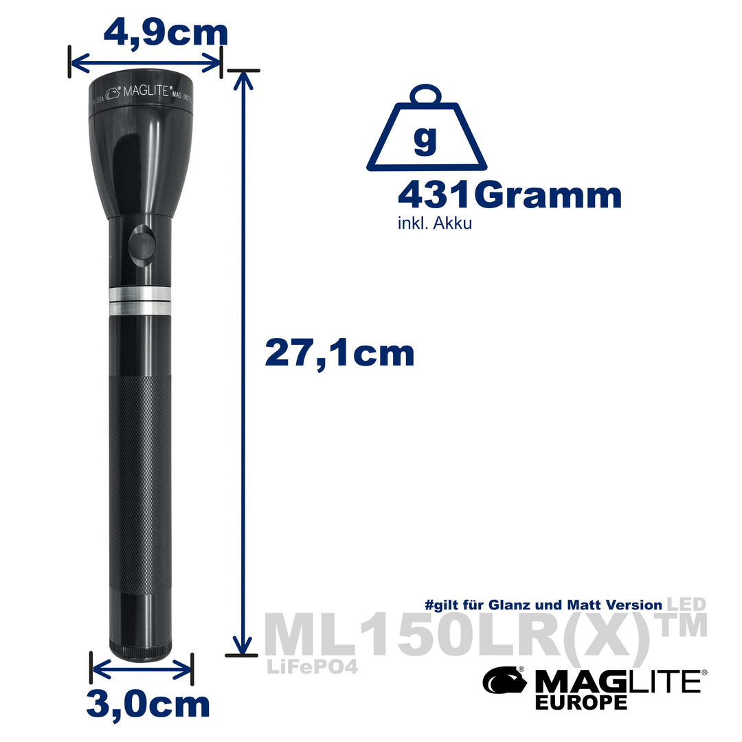 Diese Taschenlampe ist sehr gut für Militär, Polizei und private Haushalte geeignet. Das Set enthält eine ML125 Taschenlampe, ein tragbares Ladegerät, einen wiederaufladbaren NiMH-Akku und ein 230V Netzteil, alles mit einer 10-Jahres-Garantie. Das sind mehr als 4 Fußballfelder! Der ML125 wird als Set mit einem Akku und einem Ladegerät geliefert. Die wiederaufladbare LED-Taschenlampe ist mit einem SOS-Modus, einem "Power Save", ausgestattet, so dass die Taschenlampe nur 25% der normalen Lichtintensität verbraucht und somit auch umweltfreundlich und ein Blinkmodus ist Ntecore LED Taschenlampe Ntecore MT2A PRO LED-Taschenlampe mt bs zu Der Taschenlampenkorpus ist sowohl innen als auch außen eloxiert und bietet daher eine bessere Korrosionsbeständigkeit und Haltbarkeit. Auch diese MAGLITE® Taschenlampe wurde designed, patentiert und hergestellt in den U.S.A. Camping Lampe Fenix TK25Red Rote Und Weiße LED Taschenlampe Mit Bis Zu 1000 Lumen Taschenlampe 10000 Lumen - Leistungsangabe nach ANSI Standard Diese Lampe ist ideal für Profis und Outdoor-Enthusiasten und bietet eine zuverlässige und leistungsstarke Beleuchtungslösung für alle Situationen., - wiederaufladbare LED-Stablampe Die technischen Daten weisen eine Lichtintensität von 186 Lumen mit dem NiMH-Akku auf und bieten eine Laufzeit von etwa 30 Stunden bei geringer Intensität und 8,5 Stunden bei hoher Intensität, mit einer Leuchtweite von 258 Metern. Ntecore LED Taschenlampe Ntecore MT2A PRO LED-Taschenlampe mt bs zu... Die Maglite LED Taschenlampe ML125 mit wiederaufladbarem Akku ist ein bedeutender Fortschritt in der Taschenlampentechnologie und bietet hervorragende Leistungsmerkmale in einem robusten und eleganten Design. Sie wurde für vielseitige Anwendungen entwickelt und ist die erste wiederaufladbare LED von Maglite, die sowohl mit Standard-Alkalibatterien als auch mit umweltfreundlichen NiMH-Akkus betrieben werden kann. Robustes Design: Ultrastabil mit anodisierten Innen- und Außenflächen, wasserdicht und perfekt verarbeitet. Energievielseitigkeit: Funktioniert mit Alkalibatterien oder umweltfreundlichen und wirtschaftlichen NiMH-Akkus. Maglite fertigt seine patentierten Kühlkörpertechnologiekomponenten vor Ort in Ontario, Kalifornien. Unschlagbar ist aber die Möglichkeit seine eigene gewünschte Modi-Reihenfolge festzulegen (Auswahl aus 4 Folgen), den Activity Based Function Sets: Taschenlampenfeatures: Wähle zwischen 4 vorprogrammierten Funktionssätzen, um auf die für Dich beste Funktionsreihenfolge Zugreigen zu können ALLGEMEIN (General) OUTDOOR (Outdoor) POLIZEI (Law Enforcement) TAKTISCH (Tactical) Mit dem QuickClick® System kannst Du innerhalb des Funktionssatzes auf 3 von 5 verschiedenen Lichtprogrammen wählen: MOMENTAN (Momentary) MAX.