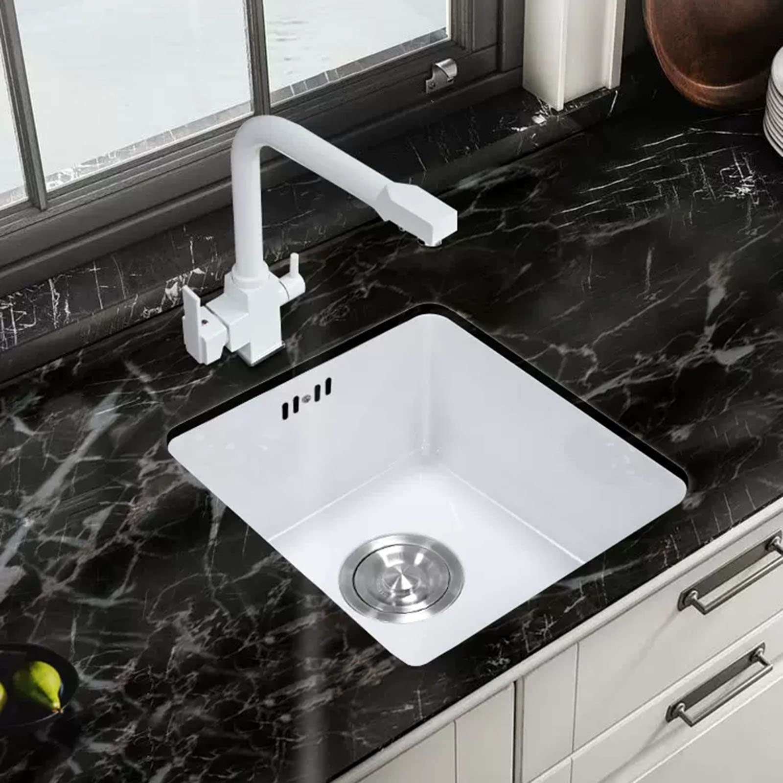 ANSNOW Kleine Quadratische Spüle, Küchenspüle, Einbauspüle, Weiße Nano-Spüle, Spüle Aus Edelstahl 304, Für Küche, Balkon, Bar/Weiss/34 * 38 * 16,5Cm