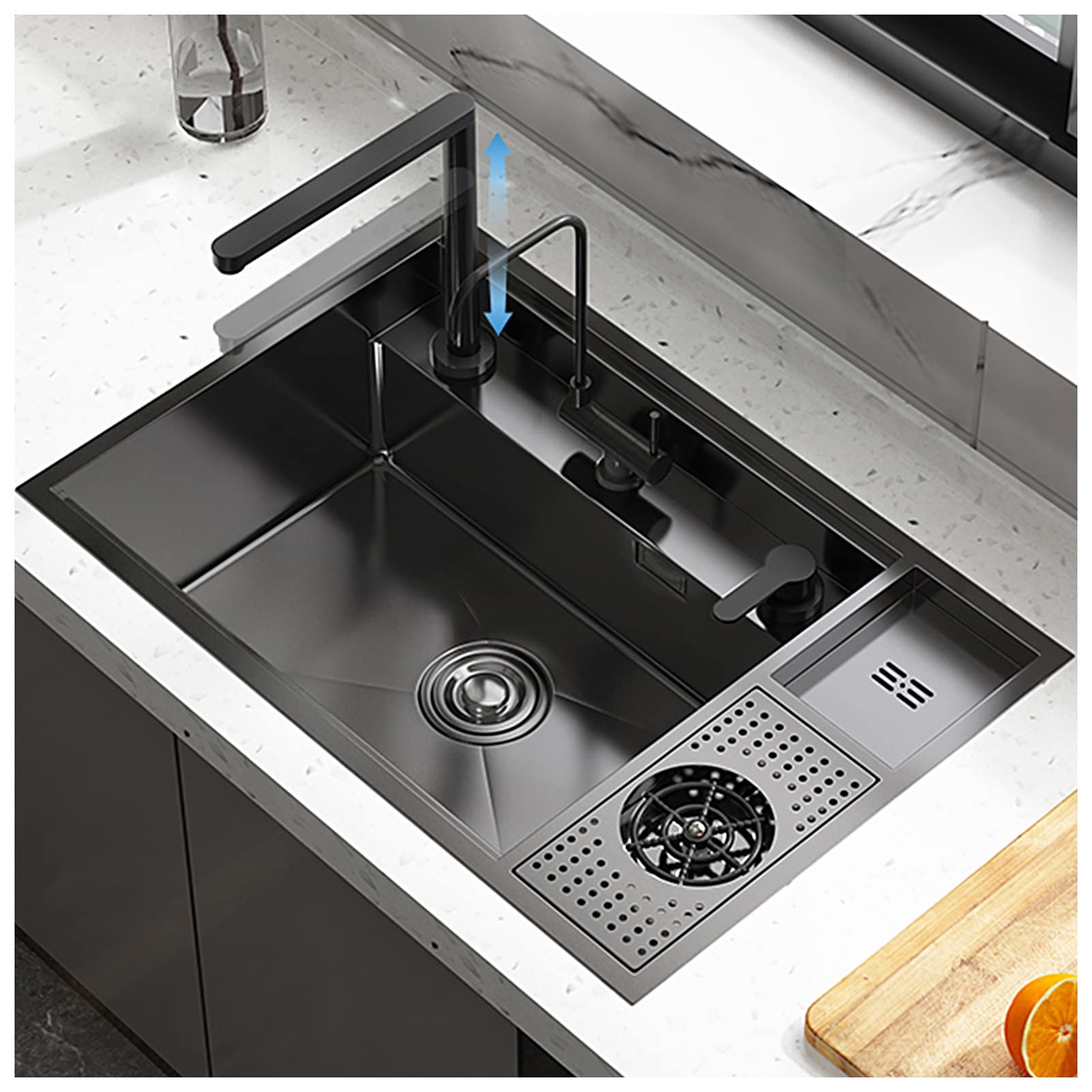 【Einfach zu entleeren】 Die X-förmige Wasserführungslinie an der Unterseite des Abflusses neigt sich zum Abfluss hin und leitet das Problem des stehenden Wassers in Küchenspülen reibungslos ab. Dicke: 18 Gauge Spülenlänge 58,4 cm Spülenbreite 45,7 cm Spülentiefe 22,9 cm Größe des Ablauflochs: 8,9 cm., Lochanzahl: 2 Löcher. Maße: Außenmaße: 58,4 cm (L) x 45,7 cm (B) x 22,9 cm (T). ANSNOW Kleine Quadratische Spüle, Küchenspüle, Einbauspüle, Weiße Nano-Spüle, Spüle Aus Edelstahl 304, Für Küche, Balkon, Bar/Weiss/34 * 38 * 16,5Cm Stiltyp: Küchenspüle mit Einzelbecken. 【Premium-Material】 Die POPFLY Küchenspüle ist handgefertigt aus 18 Gauge dickem, hochwertigem T-304 Edelstahl (18/10 Chrom/Nickel), robust und leicht zu reinigen, handelsübliche Satinoberfläche, widersteht Korrosion und Rost und passt zu den meisten Küchengeräten Lieferumfang: Einzelne Schüssel × 1 Stück. 16-Gauge-dicker Edelstahl: Ruvati Küchenspülen sind aus hochwertigem T-304 Edelstahl gefertigt. Sie sind 37% dicker als die meisten Standard-Küchenspülen und sind für die Ewigkeit gebaut. Gebürstete Oberfläche in handelsüblicher Qualität Während 4 Ablaufrillen am abgeschrägten Boden der Spüle helfen, Wasser in den Abfluss zu leiten. WENKO Turbo-Loc® Edelstahl Spültuch-Halter - Befestigen ohne bohren, Edelstahl rostfrei, 23 x 6.5 x 3 cm, Silber glänzend 1.467 50+ Mal im letzten Monat gekauft 1540 Spülenoberfläche: gebürstet. 【Garantie】6 Jahre Garantiezeit, mit 100% Inspektion, um hohe Qualität zu garantieren und kostenlose Rückgabe und Rückerstattungsgarantie zu bieten. Minimale Einbaugröße: 63,5 cm. Innenmaße: 53,3 cm (L) x 35,6 cm (B) x 22,9 cm (T). 【Fallinstallation】Das Waschbecken verfügt über eine freiliegende Arbeitsplattenkante. 【Schnelle Entwässerung】Die x-Nut ist für eine einfache Entwässerung ausgelegt, die ein leichtes Eintauchen an der Unterseite, um Wasseransammlungen zu verhindern. Viega Küchen-Siphon Kunststoff 1 1/2 x 40 / 50 mm kaufen bei