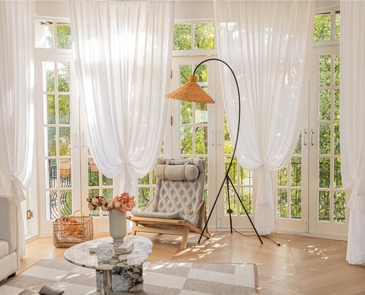 Weiße Plissee-Vorhänge Aus Leinen, 213 Cm Lang, Memory-Form