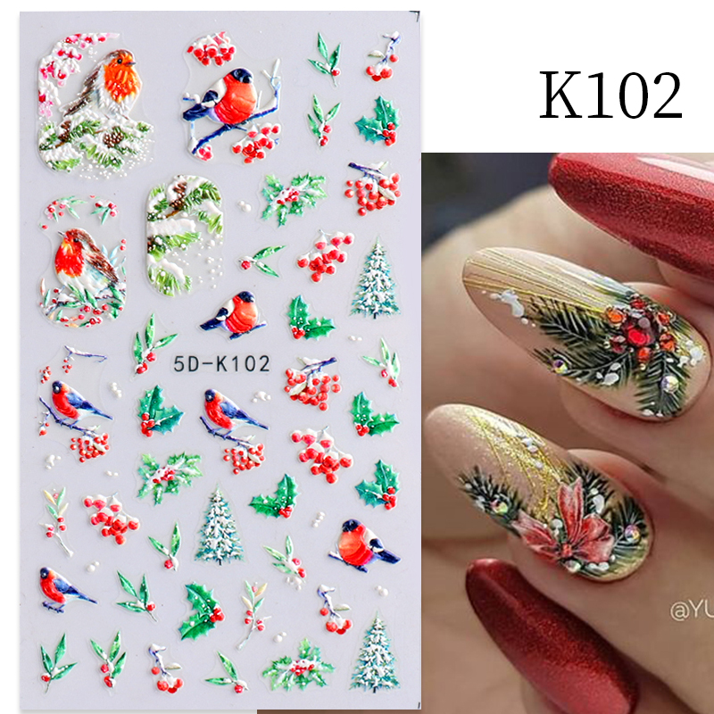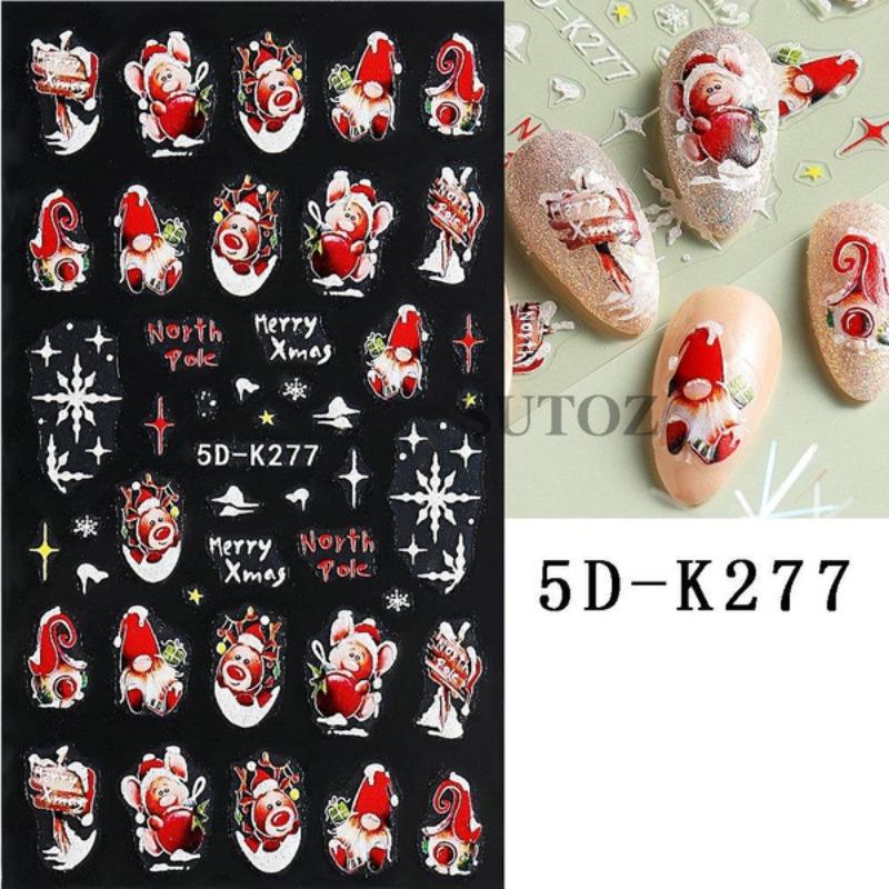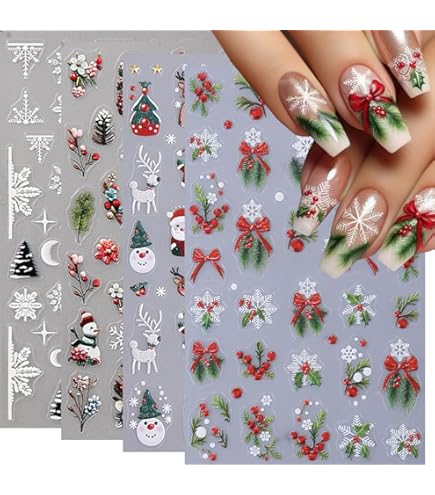 12 Stück Nagelsticker Weihnachten, Kalolary Nagelsticker Selbstklebend Nagelaufkleber, 3D