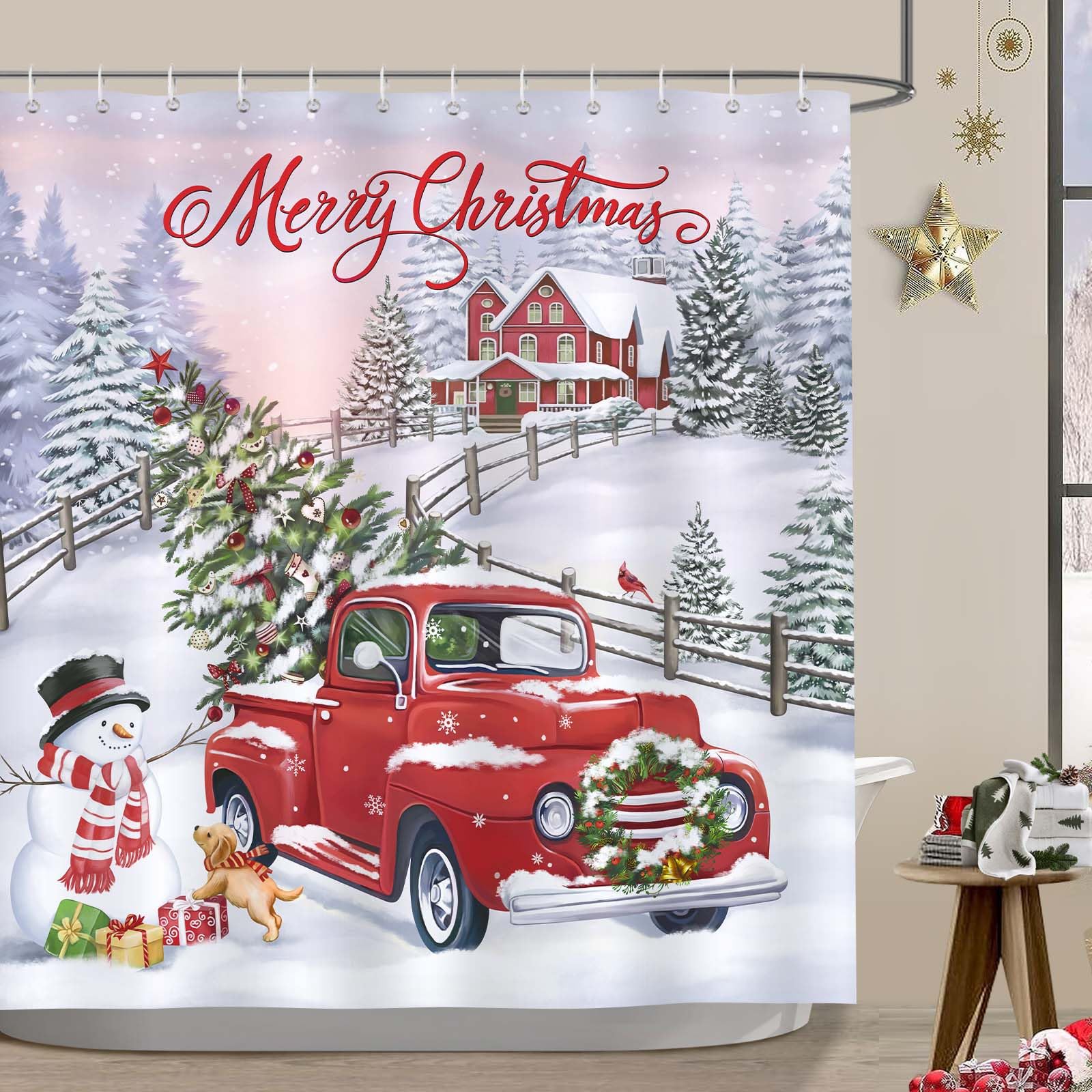 Material: Bonhause Duschvorhang aus 100% Polyester, Wasserdicht, Anti-Schimmel, Maschinenwaschbar. Weihnachtliches Design: Verleihen Sie Ihrer Badezimmer mit diesem festlichen Duschvorhang einen Hauch von Weihnachtsstimmung. Dieser Vorhang mit klassischem rot-grünem Karomuster ist mit hängenden dekorativen Weihnachtskugeln, dem Weihnachtsmann in seinem Schlitten mit Rentieren, Kiefern und... Größe: 180 x 180 cm (72 x 72 Zoll), was kann die Badewanne problemlos ganz verdecken, Perfekt für jedes Badezimmer Hinweis: Waschpflege: Handwäsche oder Maschinenwäsche in kaltem Wasser, bei geringer Hitze getrocknet werden, nicht bleichen, Kann Bügeln,Niedrige Temperatur innerhalb von 30°C. Design: Dieser Duschvorhang zeigt den Weihnachtsmann, das Rentier und den Schneemann, die gemeinsam das Fest feiern, vor einem roten Hintergrund, verziert mit goldenen Schneeflocken und dem Schriftzug Frohe Weihnachten, der eine fröhliche, festliche Atmosphäre schafft Einfach zu installieren: kannst du den Textil-Duschvorhang an jeder Dusche und Badewanne über Eck oder an einer langen Seite mit den 12 mitgelieferten Duschvorhang-Ringen befestigen, Kein Liner benötigt, Einfach zu installieren, Sehr stark und bequem! der Farbton des Fotos der Website und des tatsächlichen Elements geringfügig abweichen kann. Weitgehend einsetzbar: neben als Badewannen Vorhang, aber auch als Tür Vorhang, Fenster Vorhang, Trennwand in Schlafzimmer, Wohnzimmer, Küche, auch als Fotohintergrund für Geburtstag, Hochzeitsfeier Einsetzbar. Bonhause Duschvorhang Weihnachten Rot LKW Xmas Baum Schneemann Duschvorhang Weihnachten Bonhause Schneemann Rentier Weihnachtsmann Duschvorhang Winter Bonhause Duschvorhang Weihnachten Schneemann Xmas Hirsch Kiefern Winter Blau Duschvorhänge 180 x 180 cm Anti-Schimmel Wasserdicht Polyester Stoff Material: Bonhause Duschvorhang aus 100% Polyester, Wasserdicht, Anti-Schimmel, Maschinenwaschbar