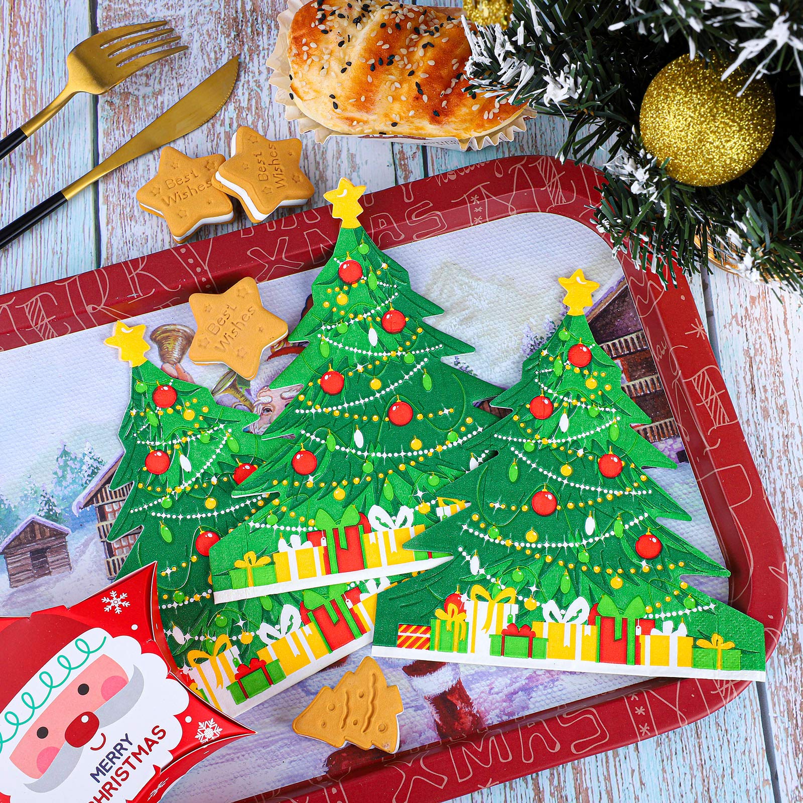 Sie müssen sich keine Sorgen machen, dass Sie genug Weihnachtsservietten für eine große Party haben. 100 Stück Weihnachtsservietten: Unsere Weihnachtsservietten mit weißem Hintergrund, in der Mitte befindet sich ein Weihnachtsbaum, der Weihnachtsbaum ist mit einigen Geschenkboxen, Schneeflocken und anderen Elementen übersät, das Gesamtdesign der Weihnachtsservietten ist voller festlicher Atmosphäre, Weihnachtspapierserviette kann Gäste auf der Weihnachtsfeier besser erleben Sie können sie nach der Party in den Müll werfen. Weihnachten Servietten Homlouue 100 Stück Weihnachts-Servietten, 3-lagig, Einweg-Papier Besteckservietten Weihnachten Unsere Weihnachtsservietten ermöglichen es Ihnen, jederzeit eine Vielzahl von Partys zu veranstalten und können die Party dekorieren, um der Party eine fröhliche und warme Atmosphäre zu verleihen. Weihnachtsservietten aus Papier können unvergessliche Erinnerungen für Gäste hinterlassen! Hohe Qualität Weihnachtspapierservietten verleihen Ihrer Party Atmosphäre, denn Ihre Gäste werden das hübsche Design lieben. Genug vier Weihnachtsservietten für Gäste: Sie erhalten 100 Weihnachtsbaum-Servietten mit den Maßen 10,9 x 19,8 cm (gefaltete Größe) 32,8 x 39,9 cm (aufgeklappte Größe). Hochwertige Weihnachtspapierservietten: Die Einweg-Servietten bestehen aus hochwertigem, 3-lagigem dickem Papier. Weihnachtsservietten aus Papier können unvergessliche Erinnerungen für Gäste hinterlassen! Weihnachts-Einweg-Handtücher für das Badezimmer sind aus hochwertigen Materialien mit ausgereifter Drucktechnologie hergestellt, saugfähig, verlieren nicht leicht Farbe und sind weich genug. Ein Kuss für Schneemann Rentier Weihnachten IHR Papier Tischservietten 33 cm quadratisch 3fädig Mittagessen Servietten Hohe Qualität: Die 3-lagigen Einweg-Servietten für Weihnachten sind aus hochwertigem Papier, das nicht leicht zu reißen ist. Und die Feiertags-Papierservietten sind weich und saugfähig, so dass sie Ihre Hände und Ihr Gesicht schnell trocknen können