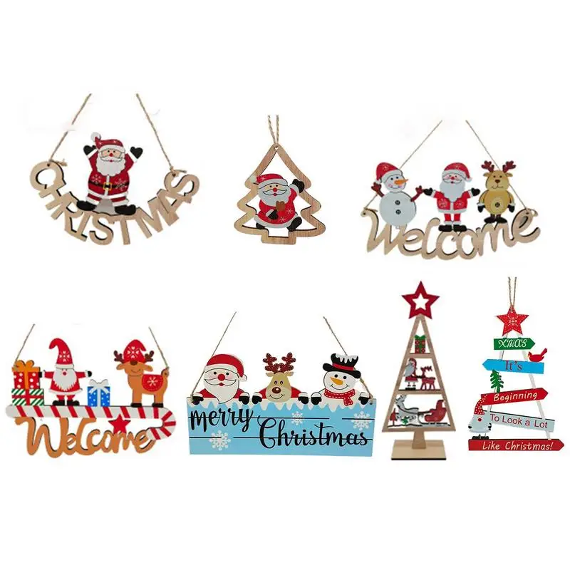 2 Stück Weihnachtsdeko Holz Merry Christmas Schild Türschild Weihnachtsbaum Aufsteller Holzdeko Weihnachtsmann Schneemann Weihnachten Tür Wand Tisch Dekoration Zum Aufhängen Hinstellen