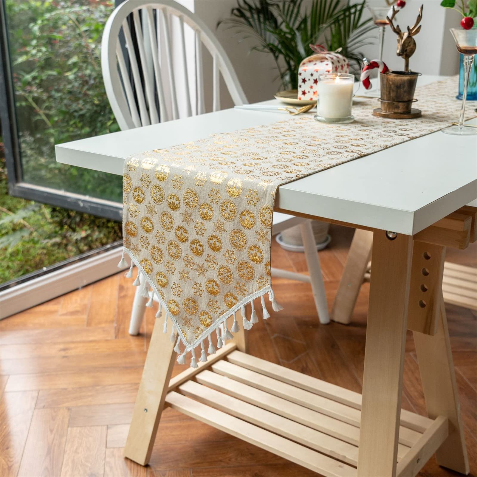 Tischläufer Weihnachten Gold Tischläufer Weihnachten, Weihnachtstischläufer Rot Leine Mit Weihnachtsbaum Glocken Zuckerstangen Aufdruck, Lang Rechteckige Weihnachtstischdecke Für Das Weihnachtsessen Tisch Dekoration(230 X 33cm Tischläufer Weihnachten Modern 0 Tischläufer Breite 25 cm abwaschbar Grün Muster Blumen Adele AUSGEZEICHNETES DESIGN - Die Oberfläche des Tischläufers ist mit Goldfolie mit weihnachtlichen Elementen wie Weihnachtsbäumen und Schneeflocken bedruckt, als Partydekoration kann er eine starke festliche Atmosphäre auf jedem Tisch schaffen. ANWENDBARER KREIS - Perfekt für Küche, Esszimmer, täglichen Gebrauch, Themenparty-Dekoration, Urlaub und besondere Anlässe. Tischläufer abwaschbar für die Weihnachtszeit im online kaufen. umweltfreundliche Materialien schnelle Lieferung günstige Preise Kauf auf Sander PINO Tischdecken, Tischläufer und Kissenhüllen Egal zu welchem Anlass, dieser Tischläufer kann eine großartige Ergänzung für Ihren Tisch sein. EINFACH ZU REINIGEN - Kleine Flecken lassen sich leicht mit einem feuchten Tuch abwischen.
