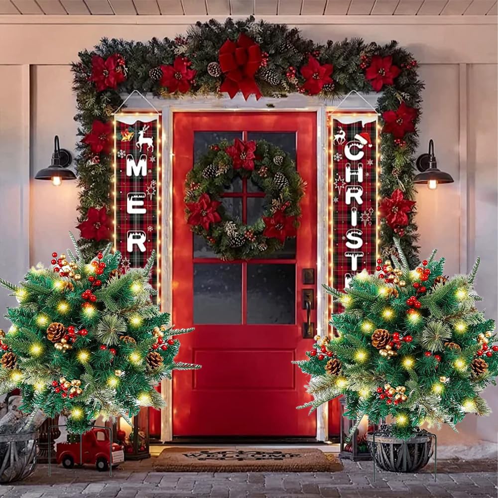 Künstlicher Feiertags-Pflanzgefäß, Vorbeleuchteter Weihnachtsbaum Urnenfüller Feiertags Pflanzgefäß Dekorationen Batteriebetriebene