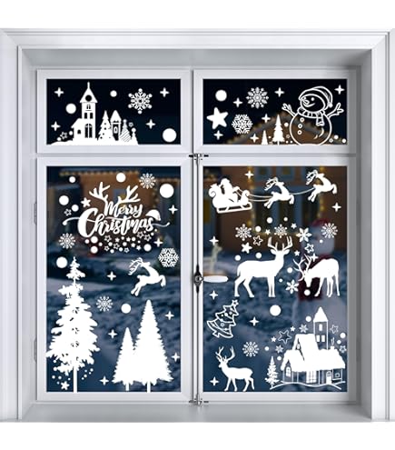 KOCOVIMI Fensterbilder Weihnachten Selbstklebend, 190 Weiß Weihnachtsdekorationen, 2025 Beliebteste Weihnachtsaufkleber, Weihnachtsdekoration, Weihnachtsmann, Rentier, Aufkleber Für Party